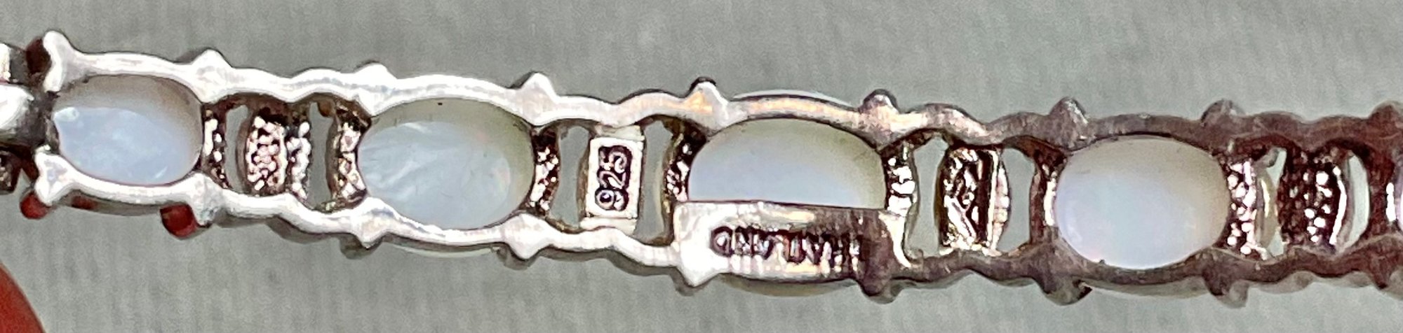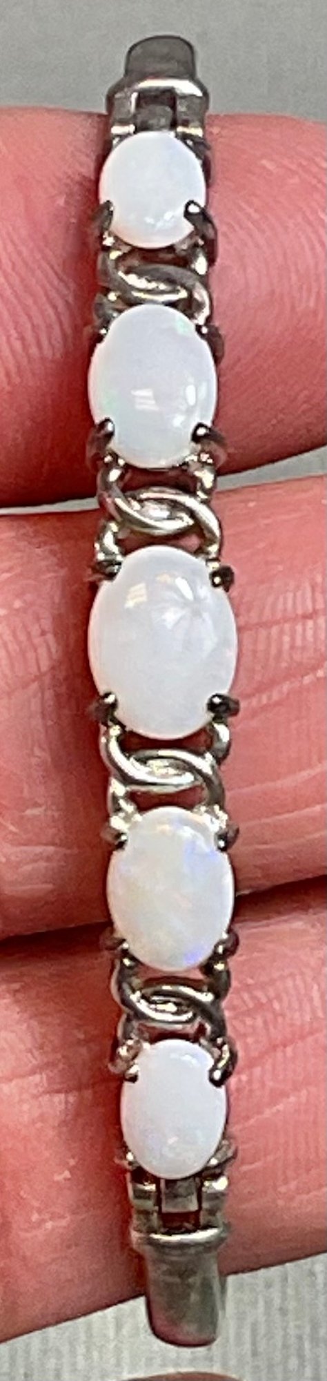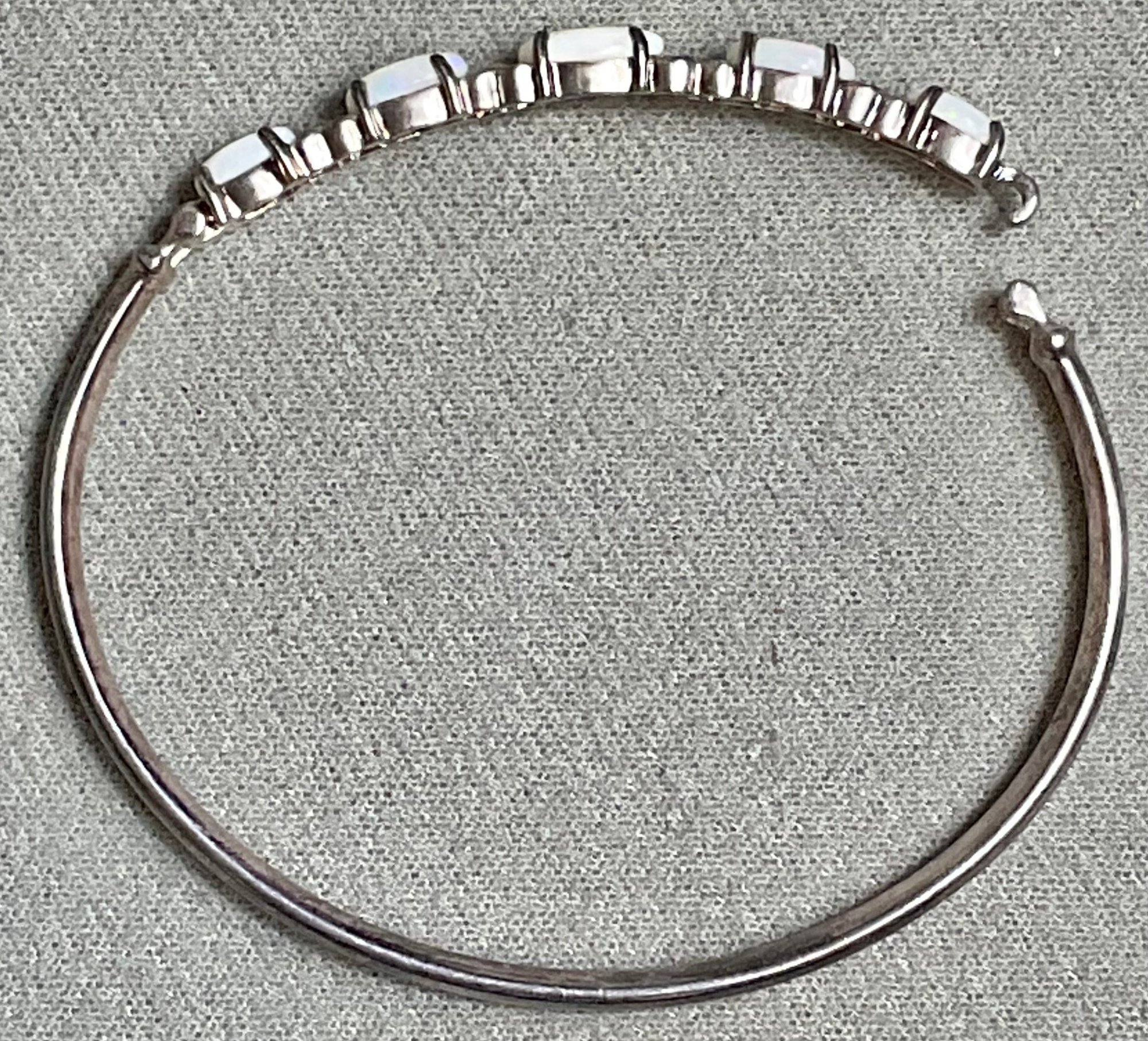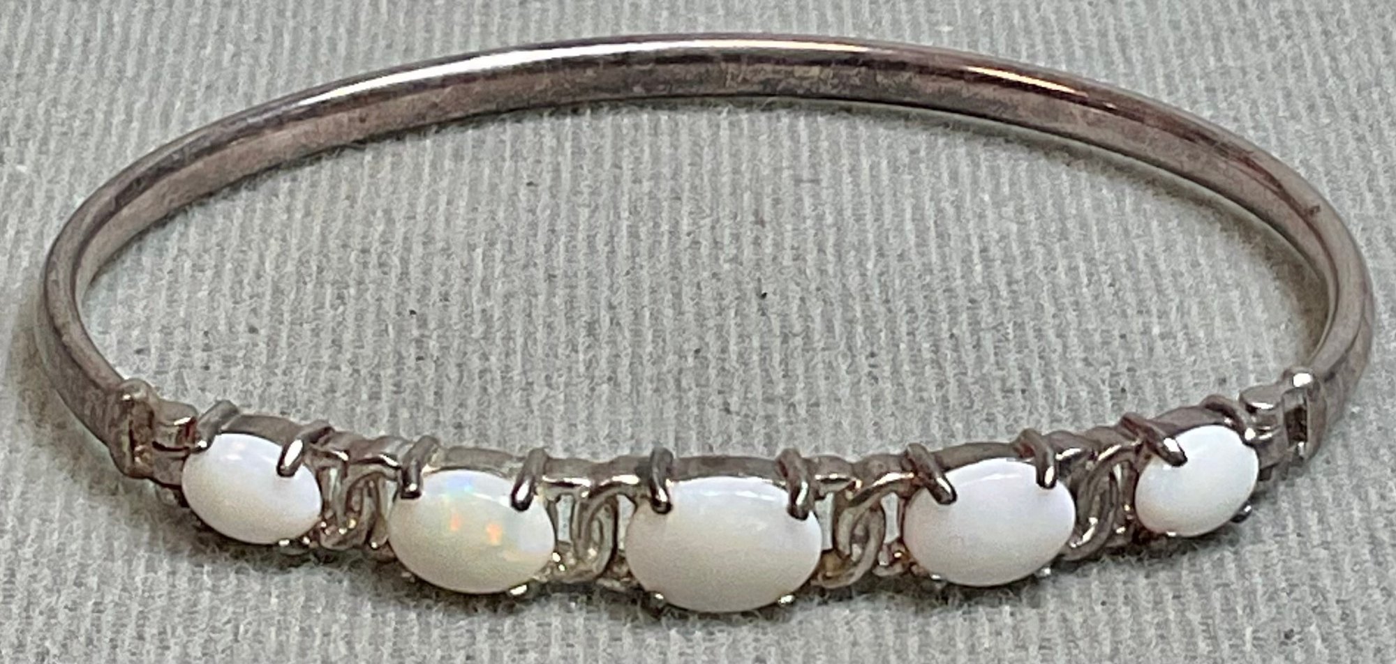 Sterling & Opal Hinged Bangle Bracelet - Thailand - 2 5/8” wide - weighs 9.7 grams - good used condition