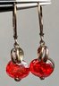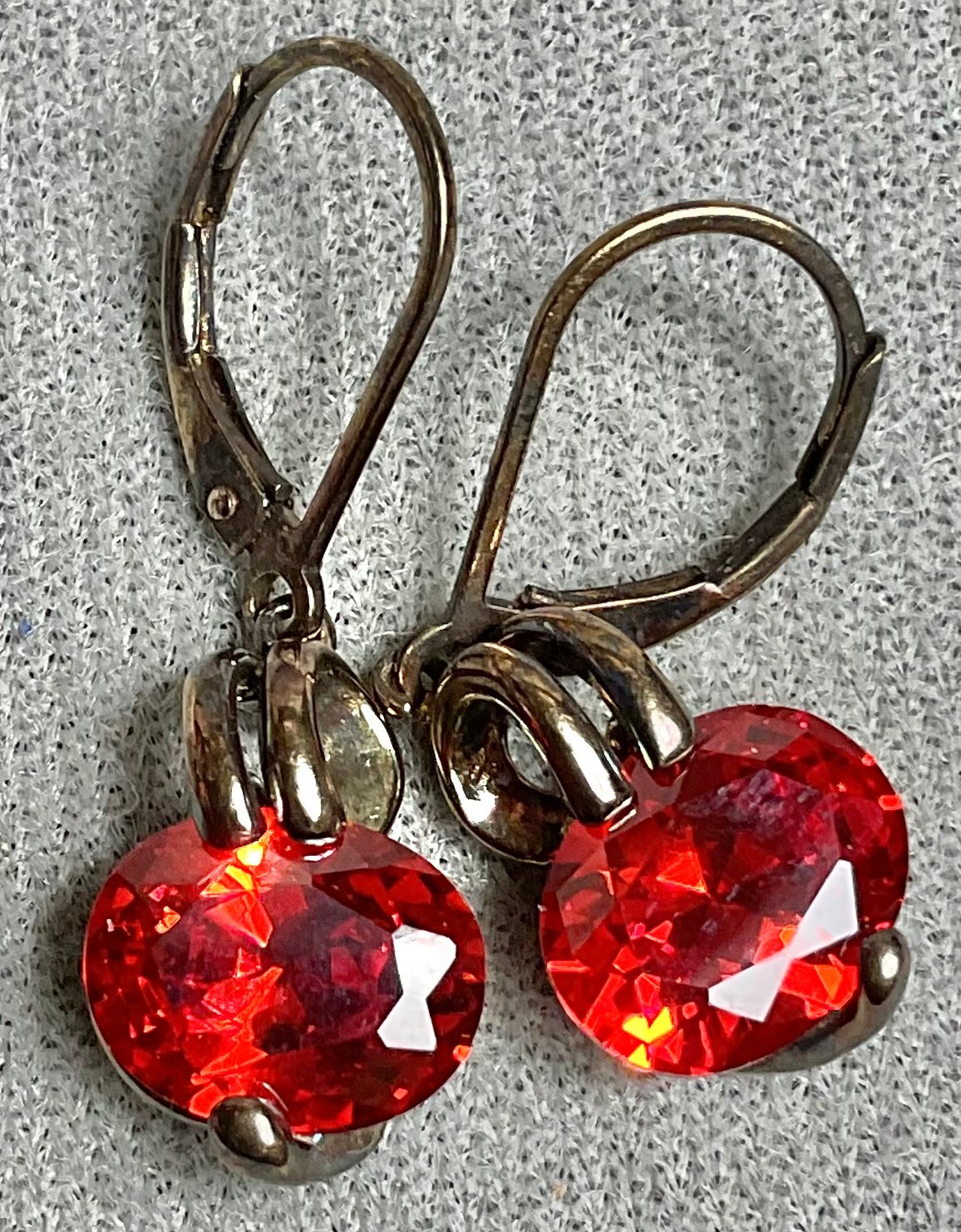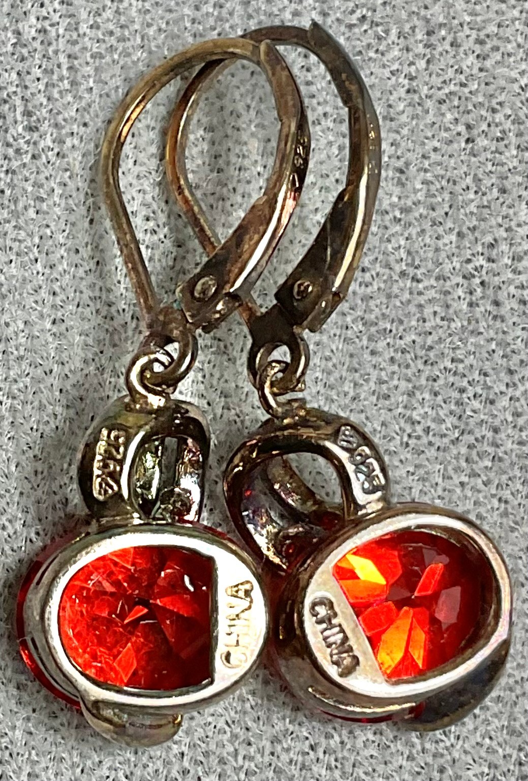 Sterling Red Stone Drop Earrings - Fire Opal? - good used condition