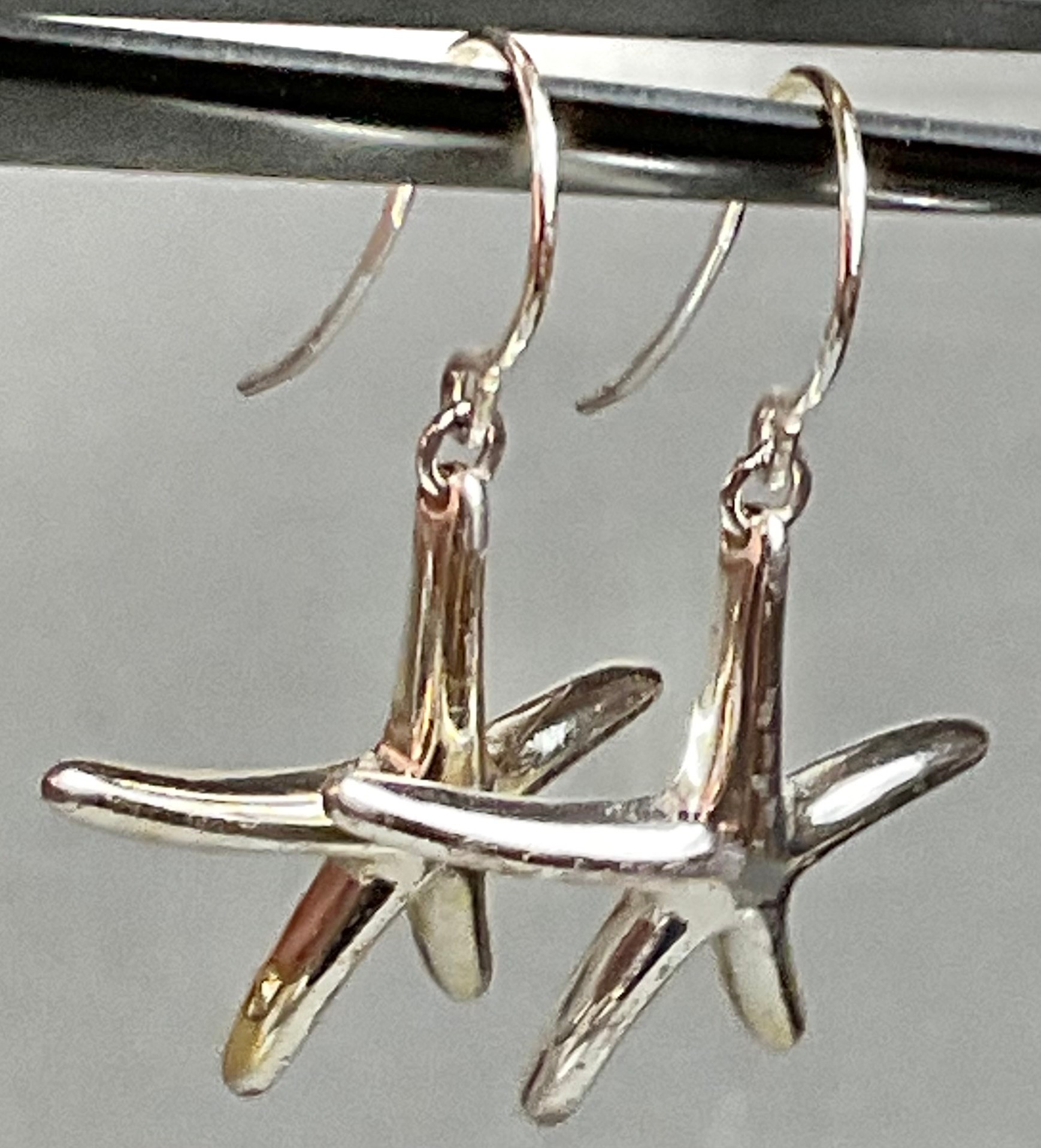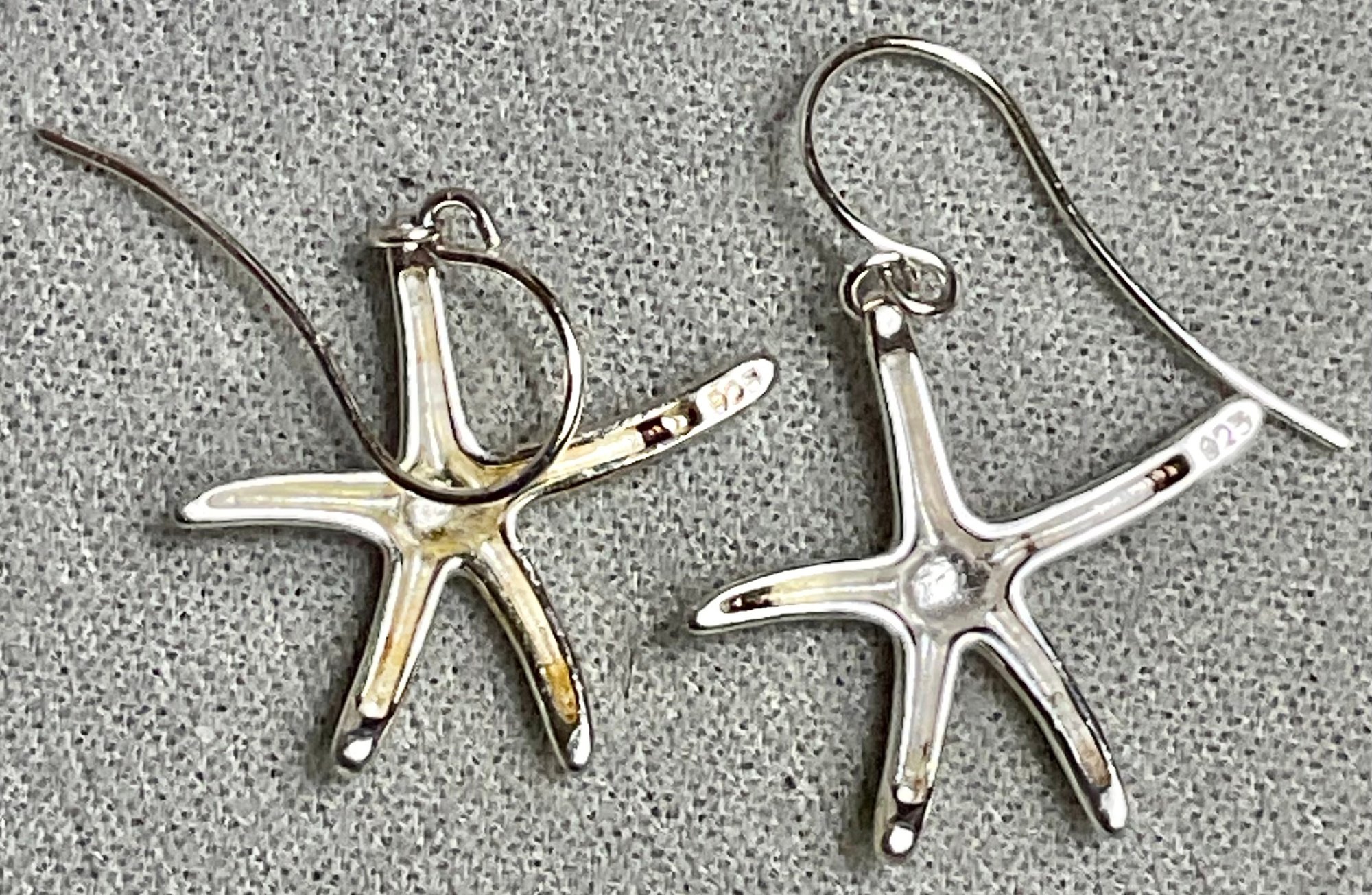 Sterling Sea Star Earrings - 1” x 7/8” - weighs 3.2 grams - good used condition