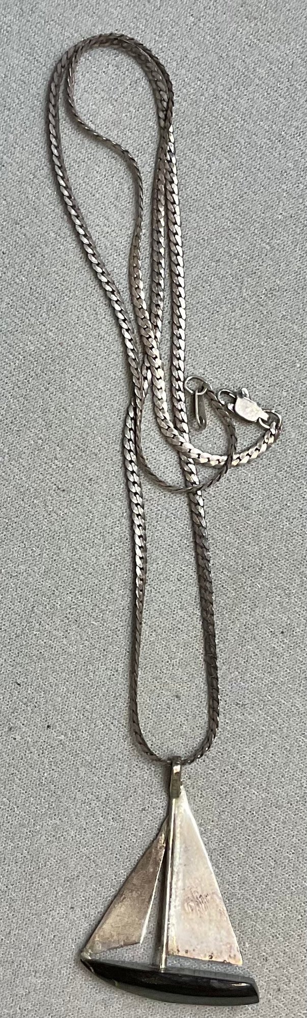 Sterling Silver Chain & Sailboat Pendant - chain 23” - pendant 2” x 1.5” - weighs 13 grams - good used condition