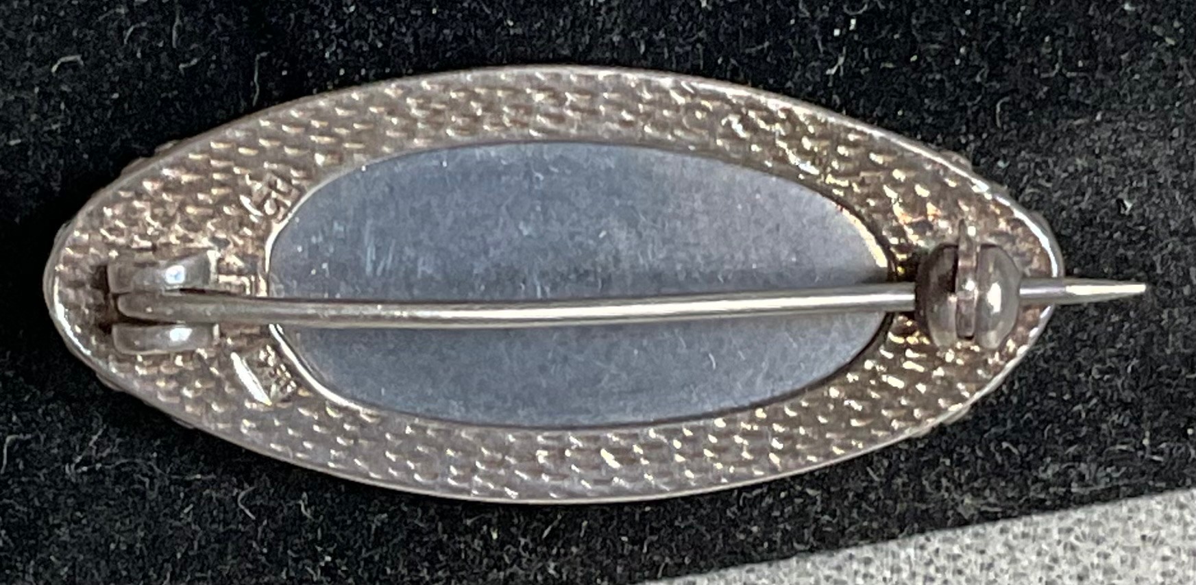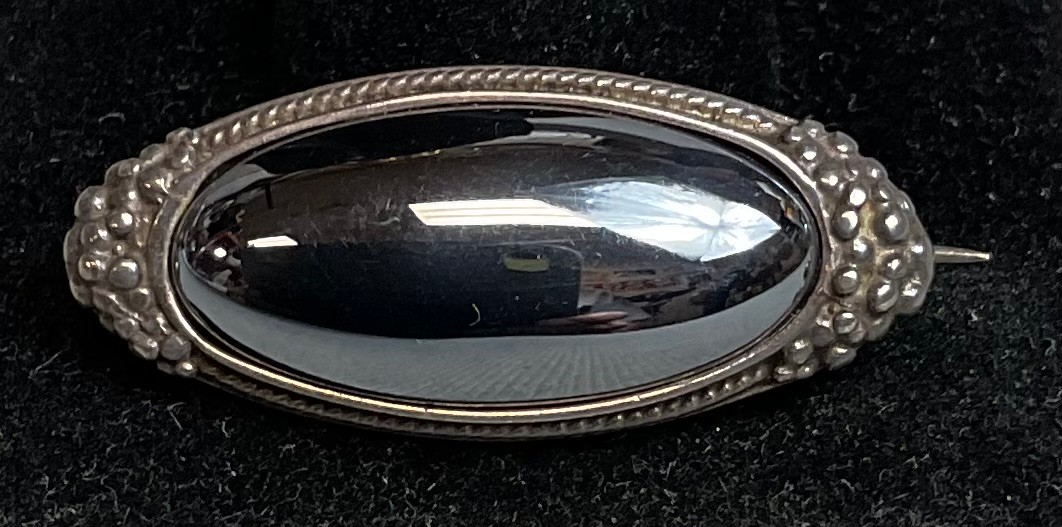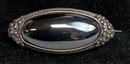 Sterling Silver Hematite Brooch - 1 3/8” long - 5/8” wide - good used condition