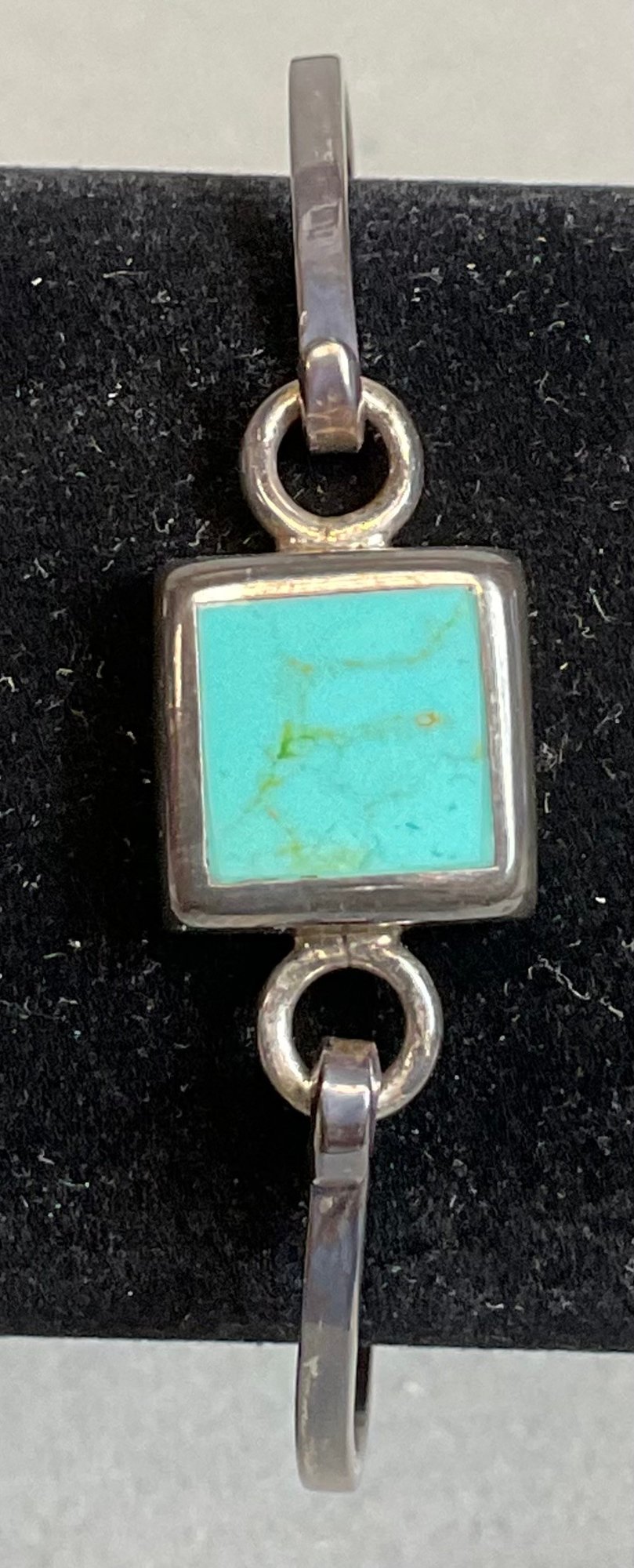 Sterling Silver & Turquoise Bangle Bracelet - measures 2.5” across opening - weighs 12.3 grams - good used condition