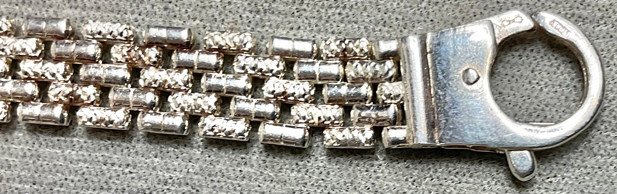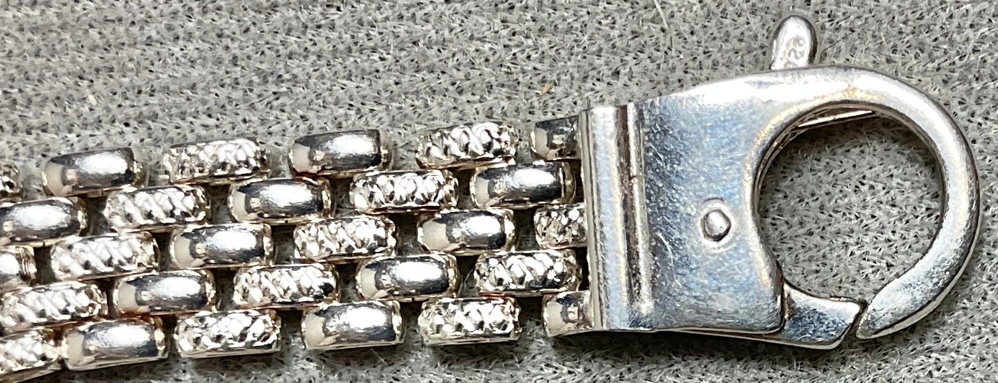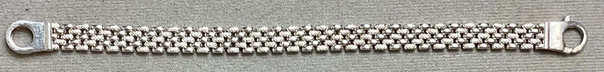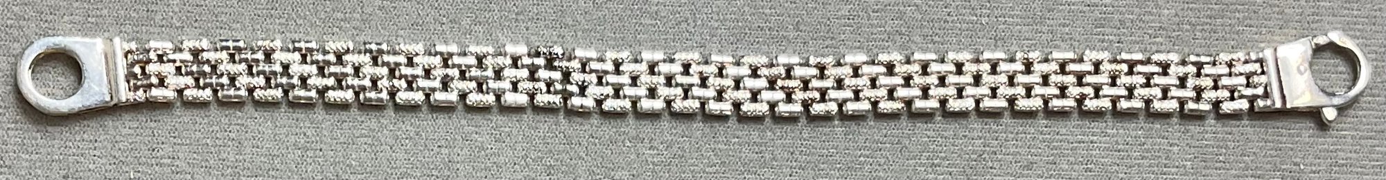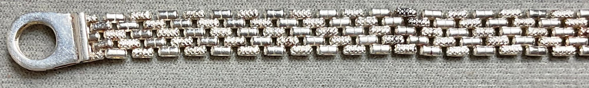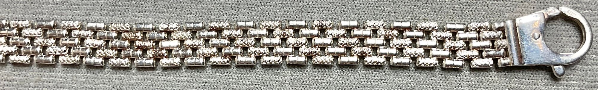 sterling Textured Woven Link Bracelet - has infinity mark - 8” long - 3/8” wide - weighs 18.1 grams - good used condition