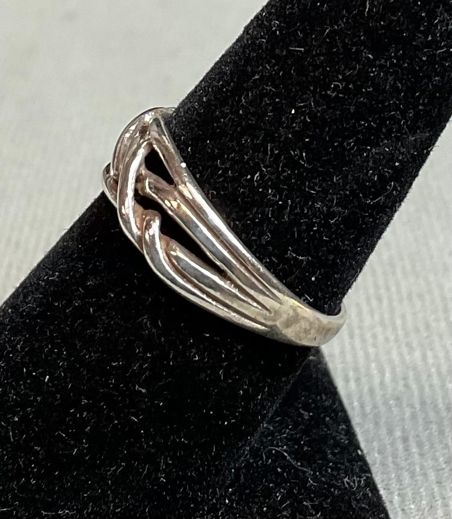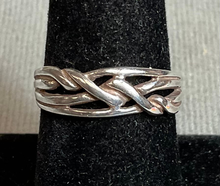 Sterling Weave Design Ring - size 9 - weighs 2.4 grams - good used condition
