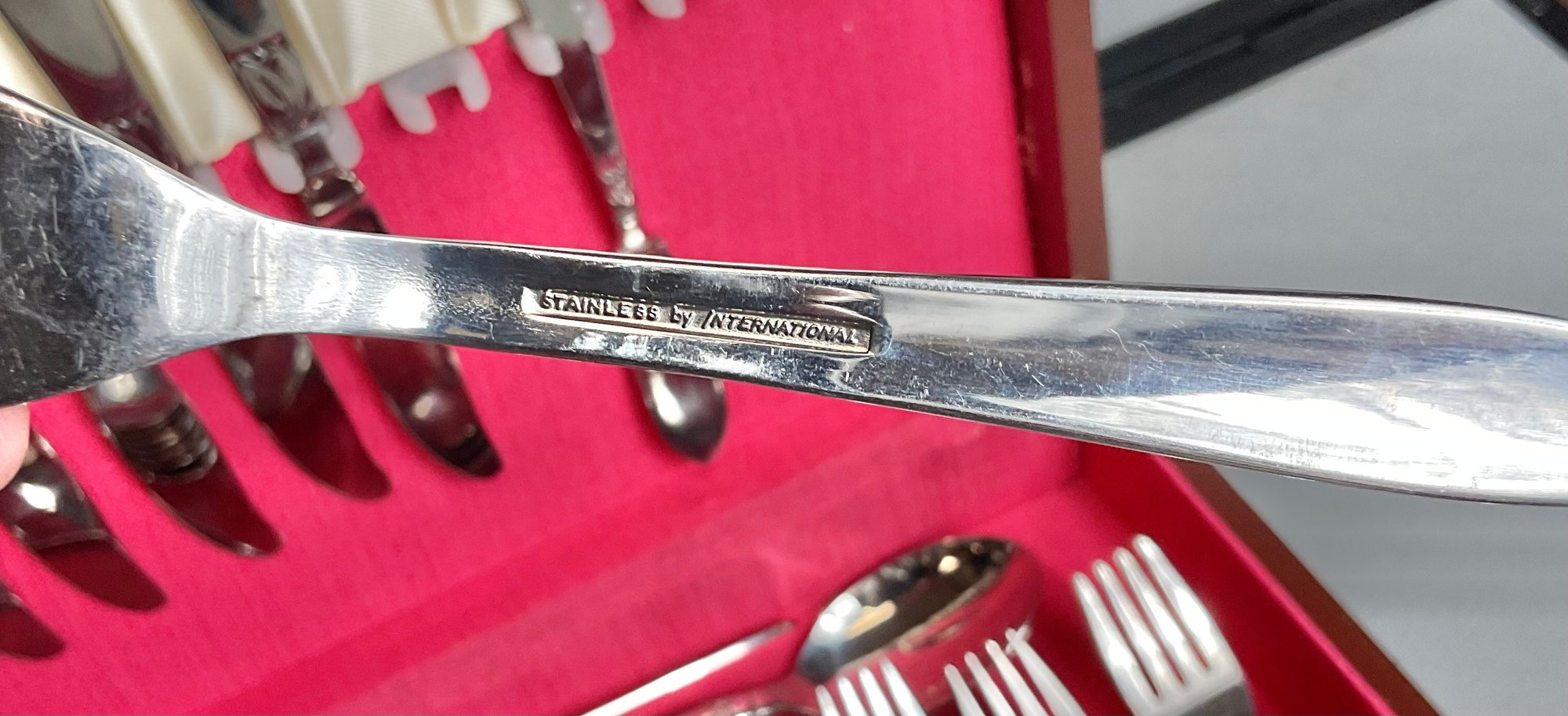 International Stainless Flatware Service For 4 Plus Extras - 45pc - extra spoons, forks, knives, serving pieces - good used condition