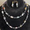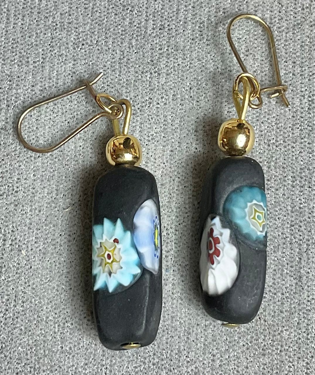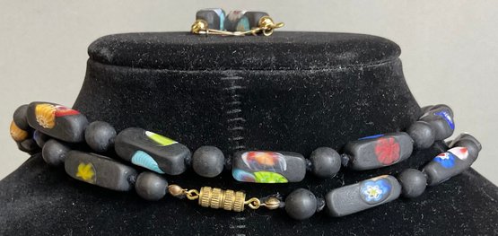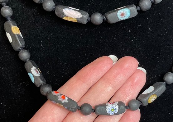 Venetian Millefiori Bead Necklace & Earrings - necklace 35” long - earrings 1.25” long - good used condition