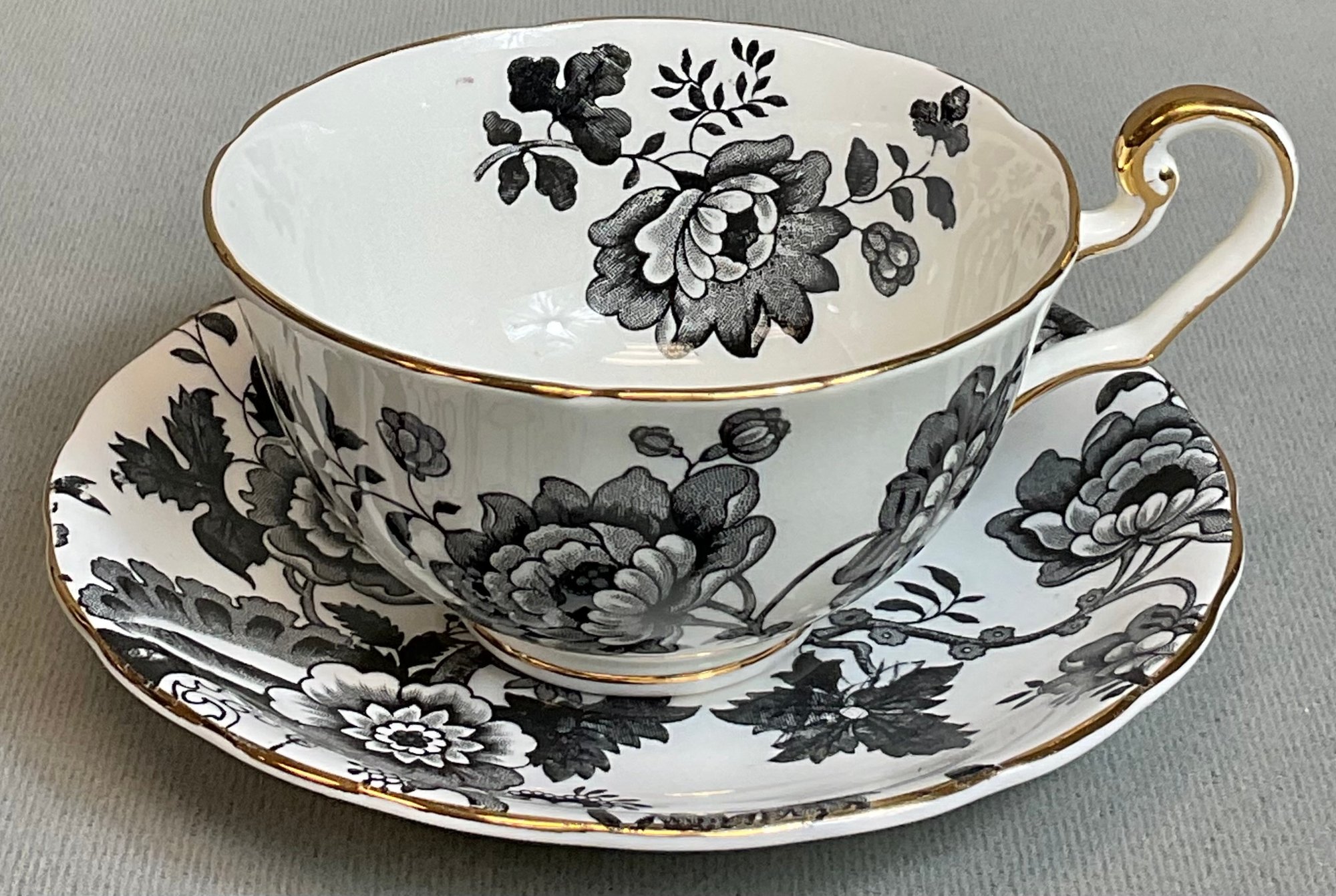 Victoria C & E Mandarin Teacup & Saucer - England - no chips - teacup 2.5” tall - saucer 5.25” round - good used condition