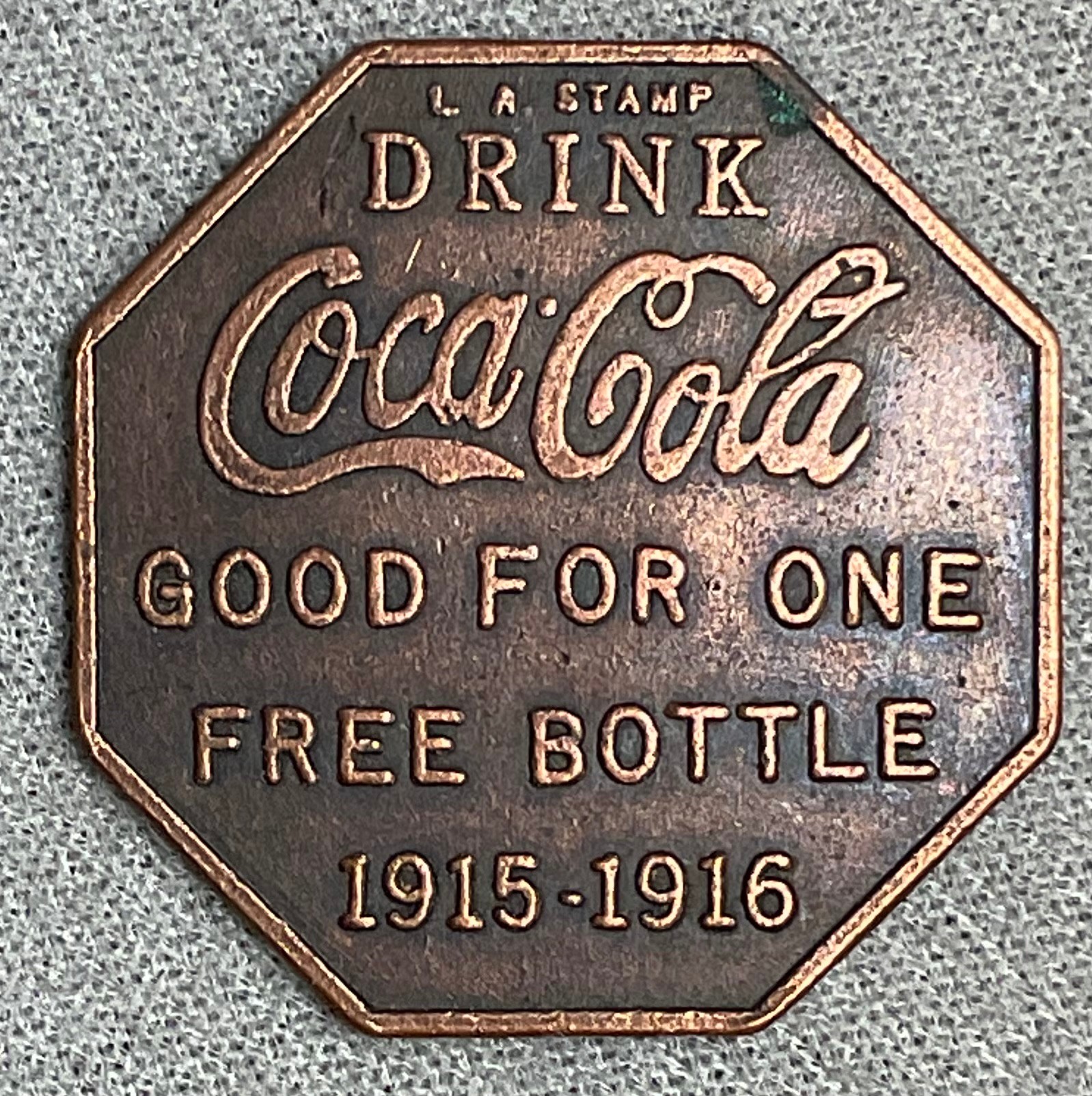 Vintage 1915- 1916 Coca Cola Free Bottle Token - 1” x 1.5” - good used condition