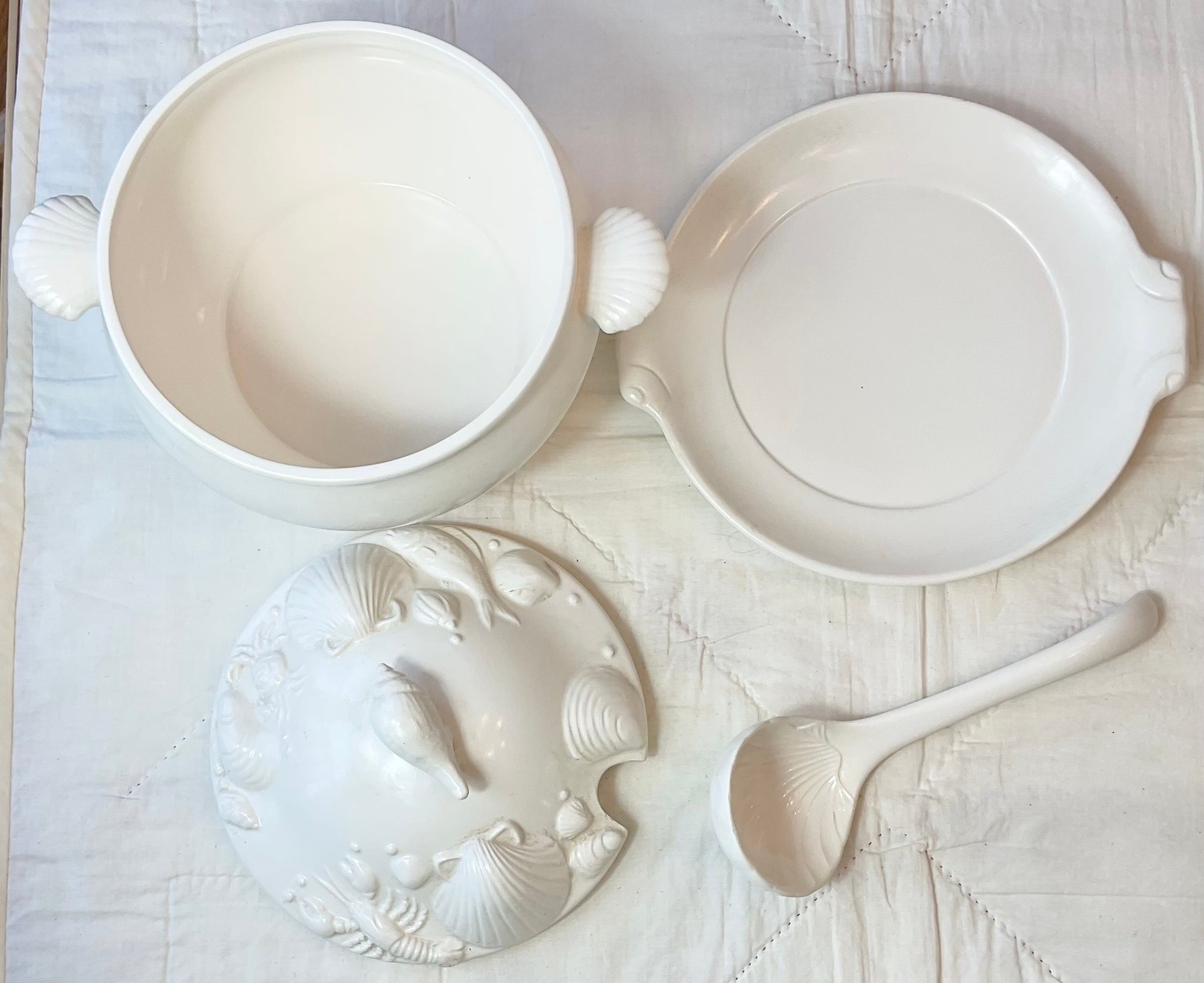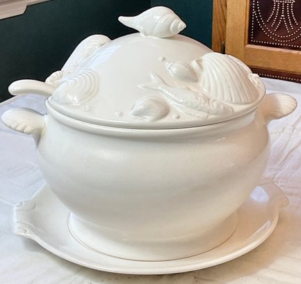 Vintage Beach Theme Soup Tureen - Made Japan - no chips - 9.5” tall x 11” long x 10” wide - good used condition