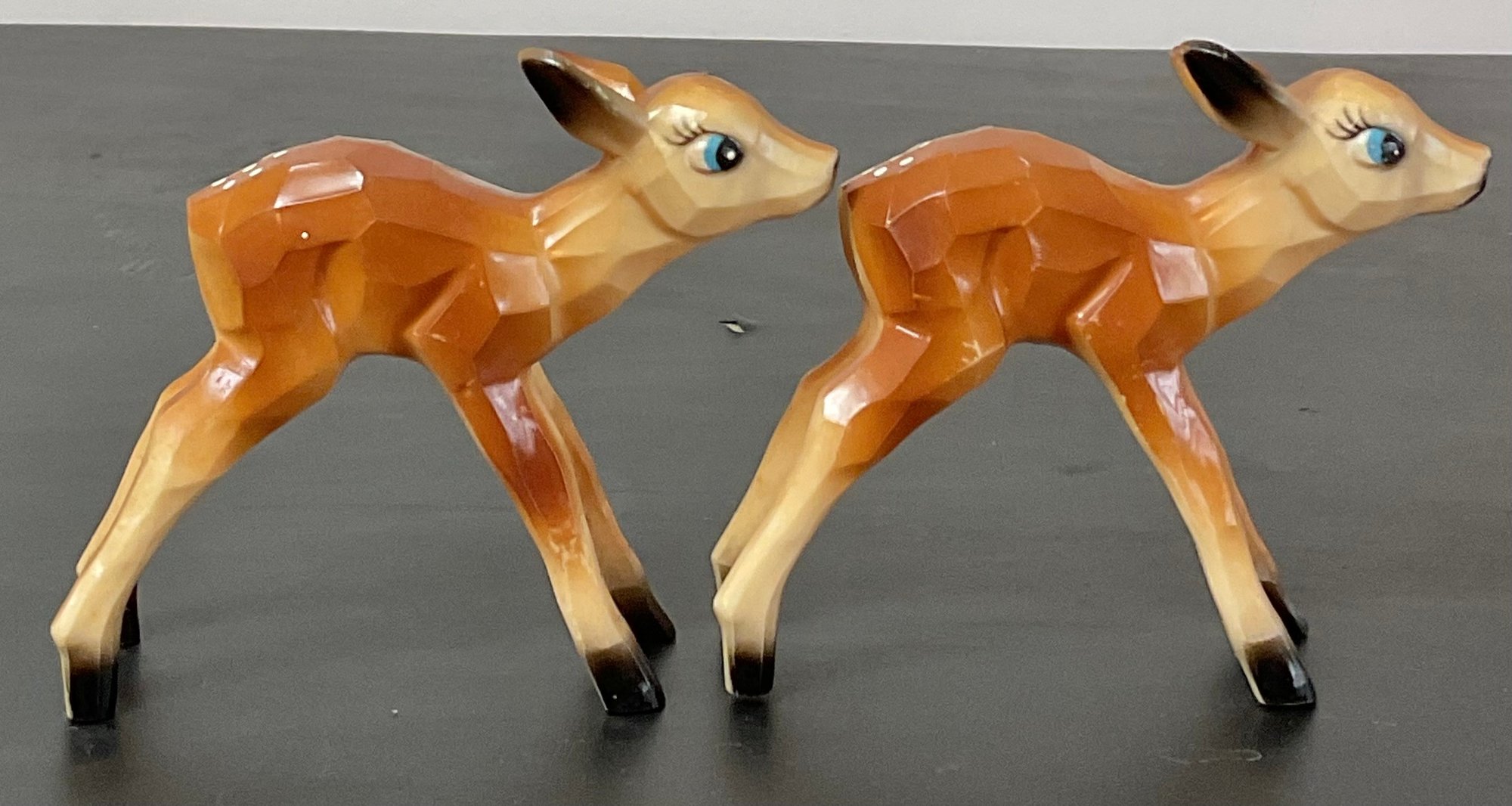 Vintage Carved Plastic Bambi Deer/Fawn Figurines - no cracks - 4.25” tall x 5.5” long x 1.5” wide - good used condition