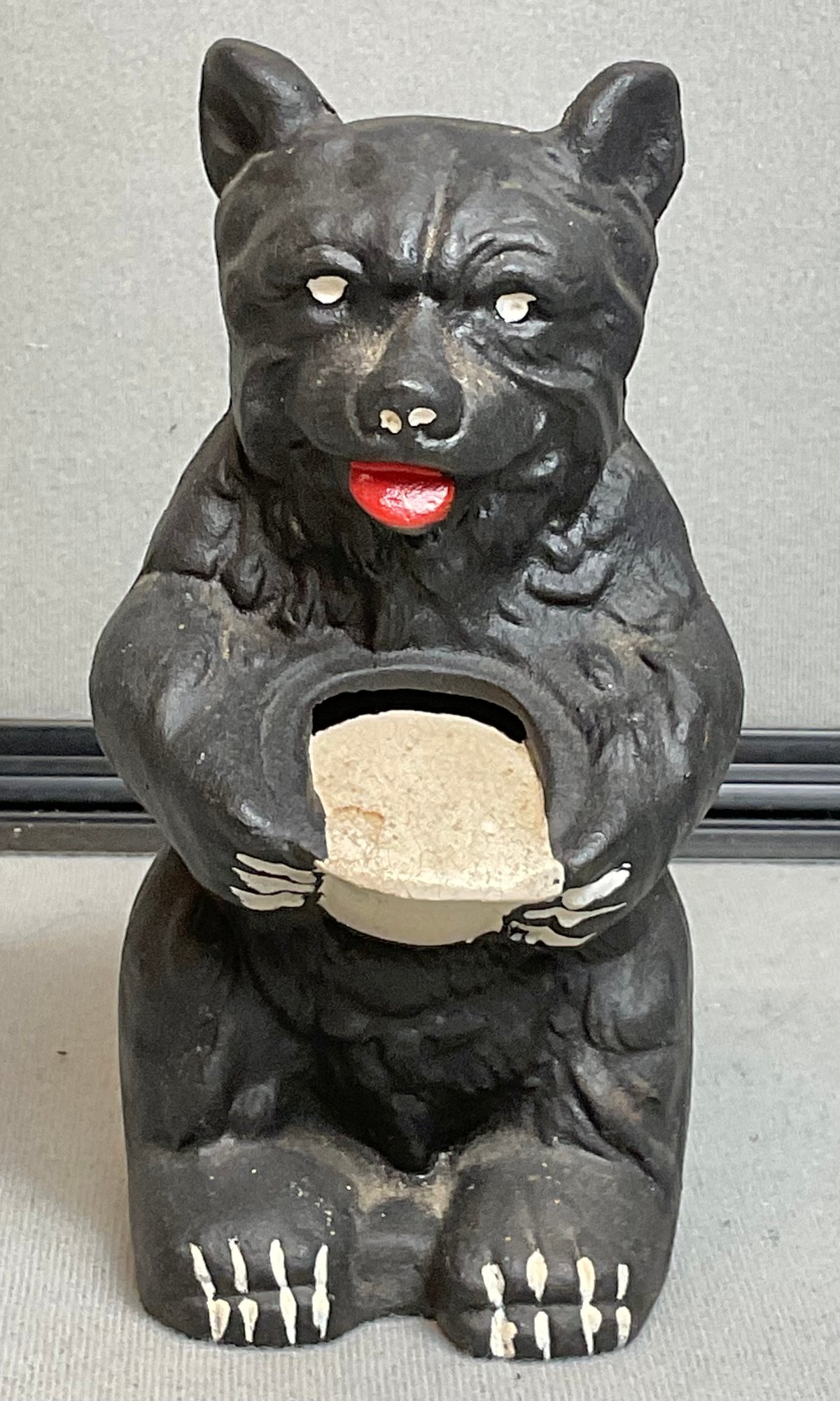 Vintage Cast Iron Black Bear Still Bank - 6.5” tall - good used condition