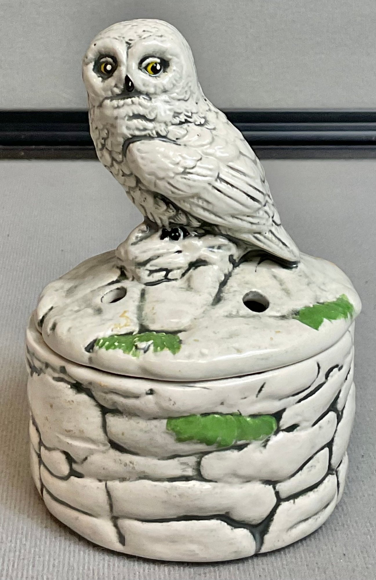 Vintage Ceramic Owl Trinket Dish - no chips - 4.75” tall - good used condition