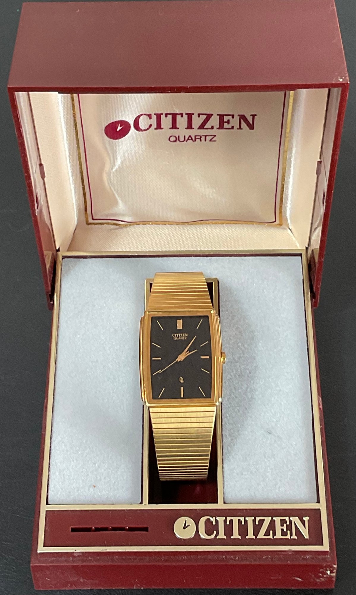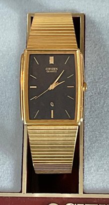 Vintage Citizen Gold Tone Tank Watch - needs battery - good use condition