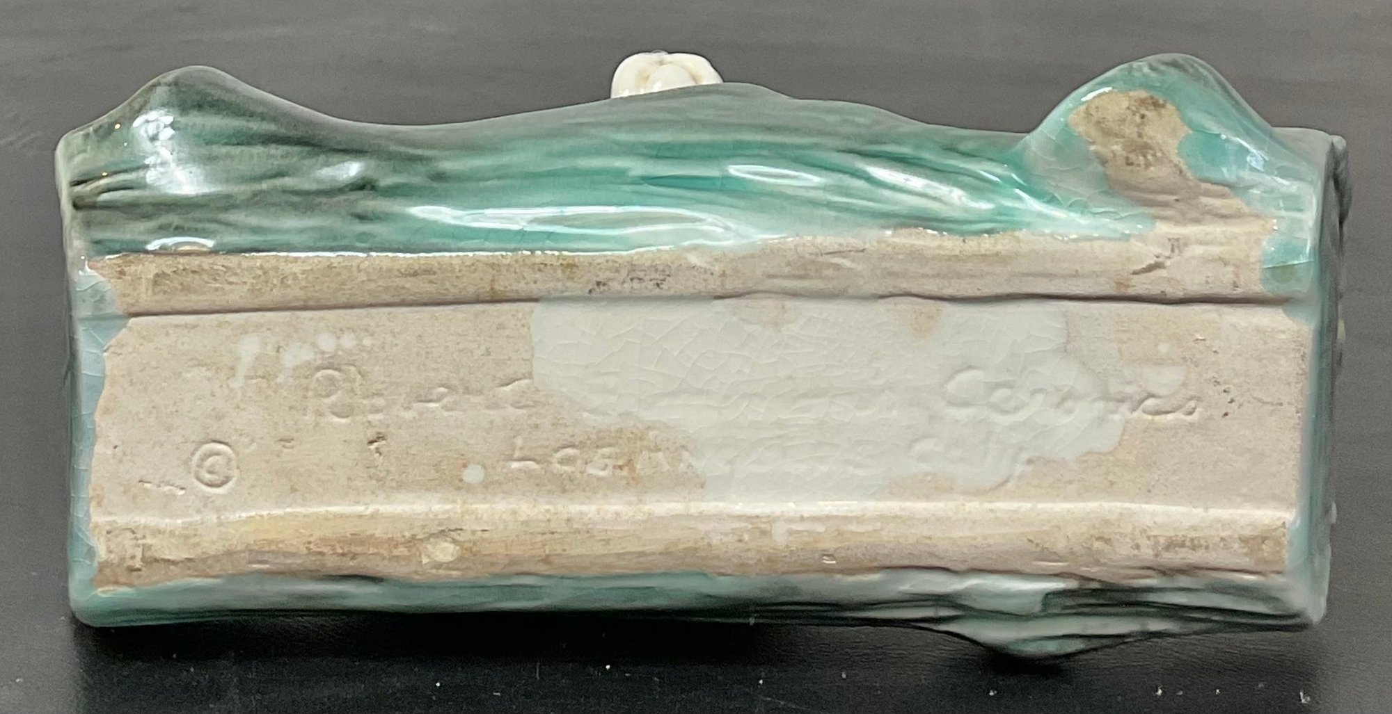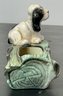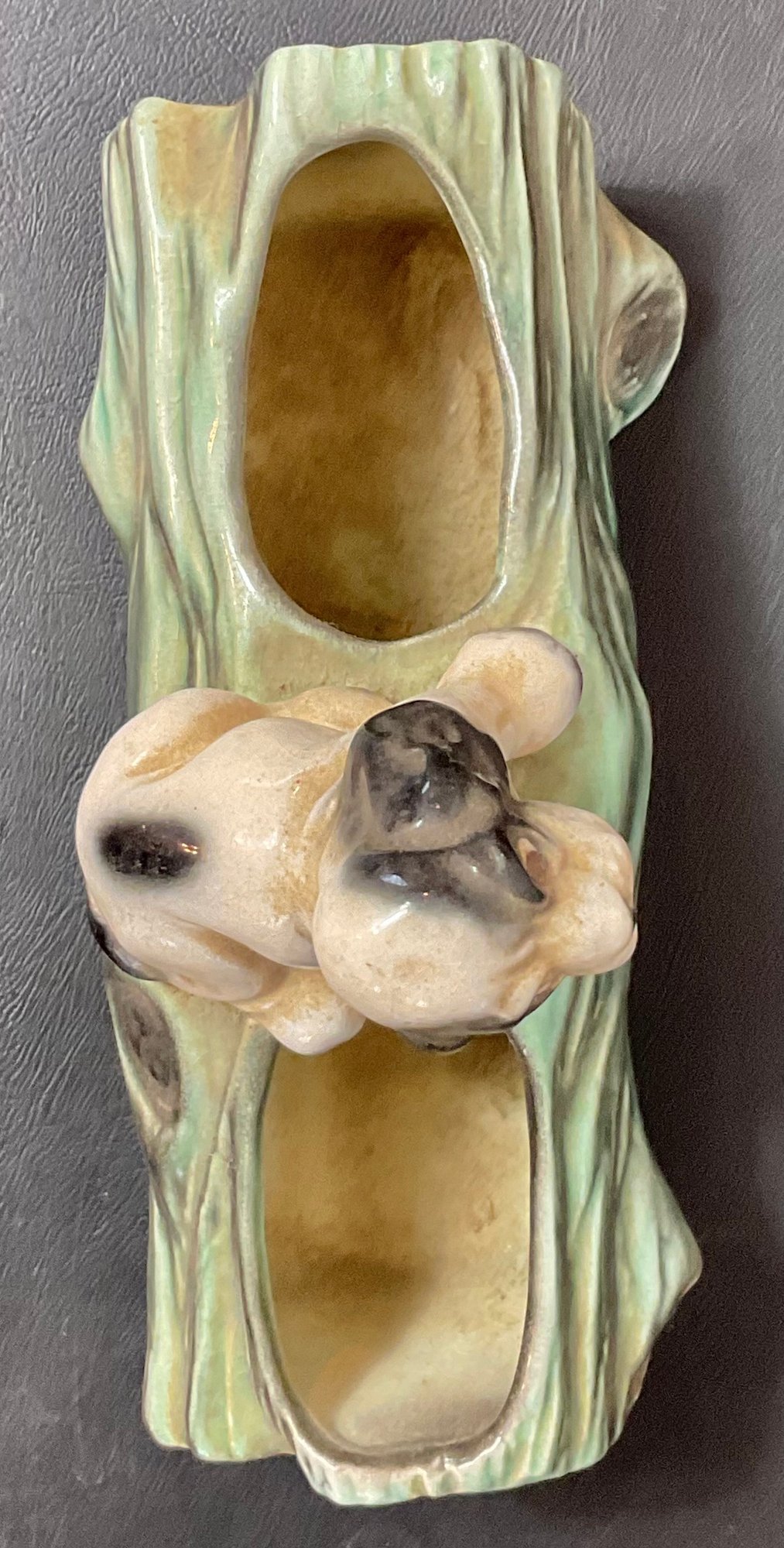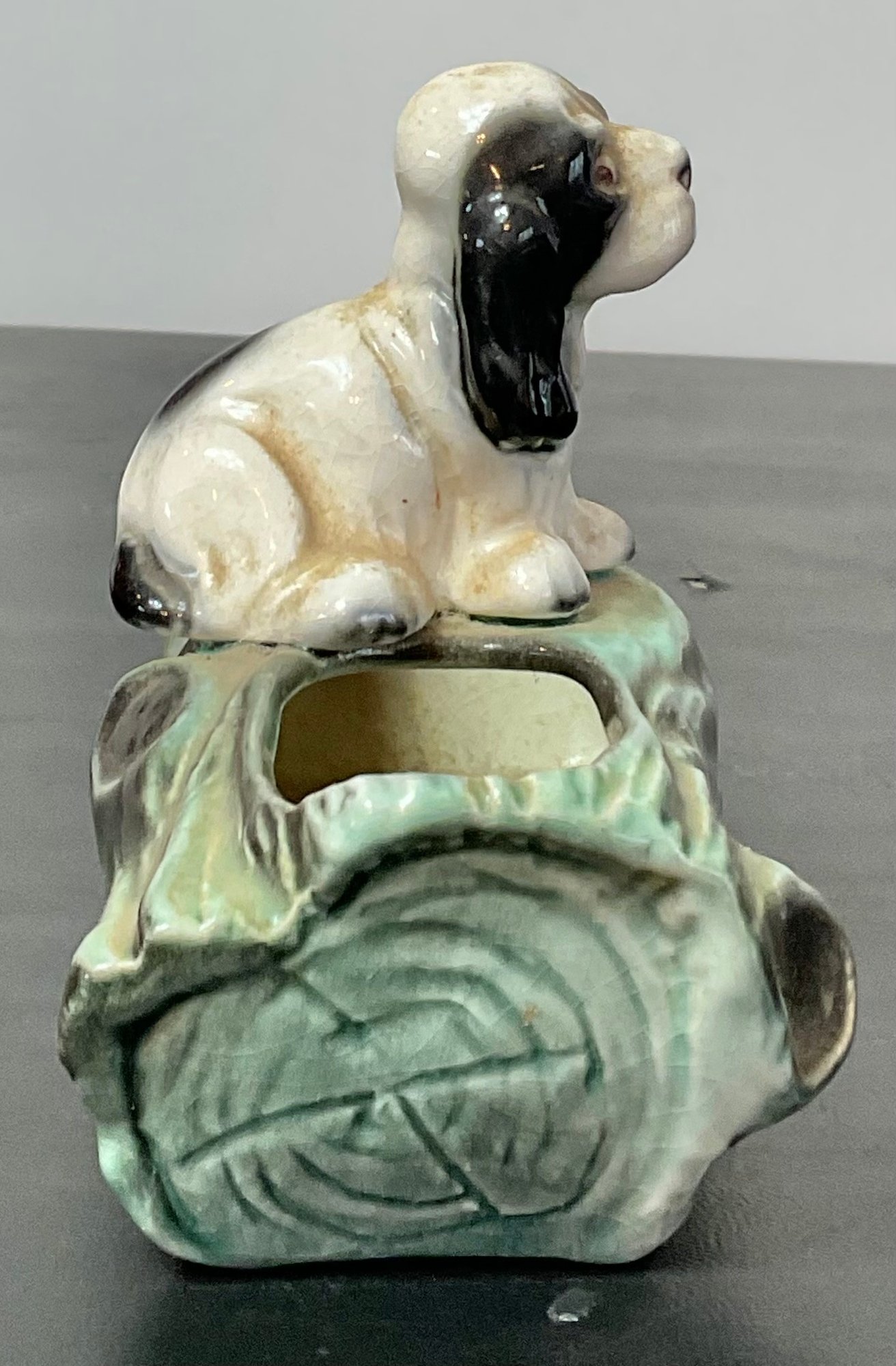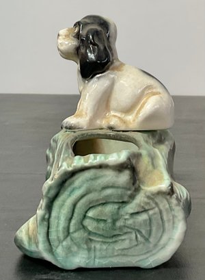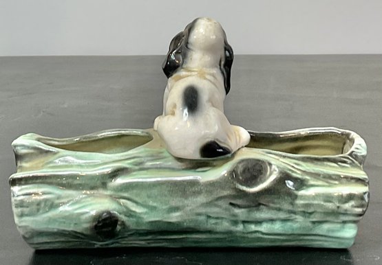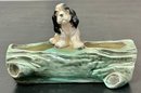 Vintage Cocker Spaniel On Log Ceramic Planter - no chips - 4.25” tall x 6 5/8” long x 3” wide - good used condition