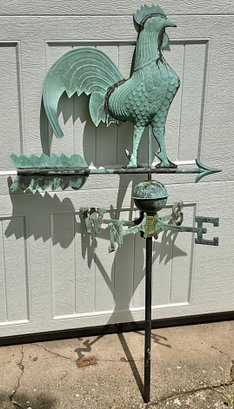 Vintage Copper Rooster Weathervane - great patina - 48” tall x 25” wide - good used condition