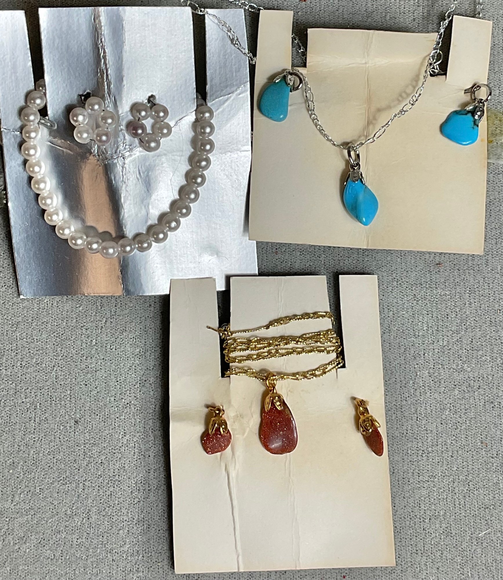 Vintage Doll Jewelry - Real Turquoise & Gold Stone - necklace and earring sets - good used condition