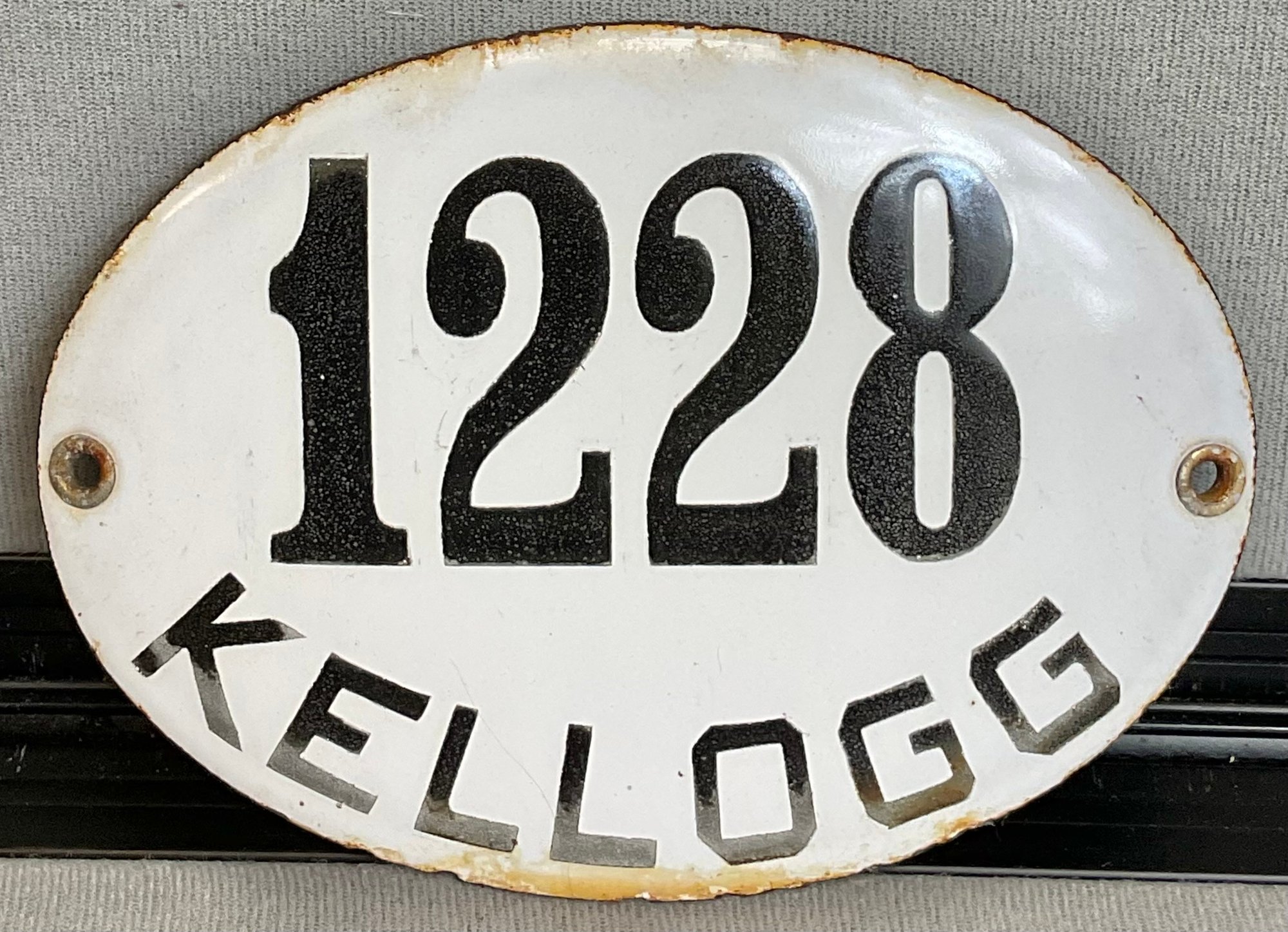 Vintage Enamel House Number & Last Name Plaque - 4” x 5.5” - good used condition