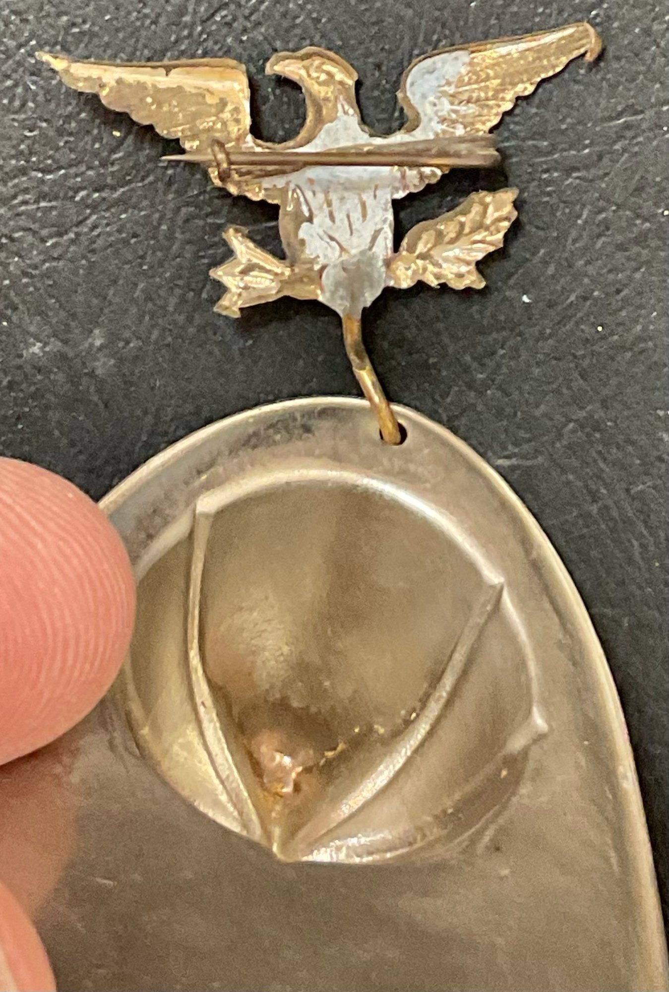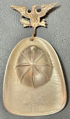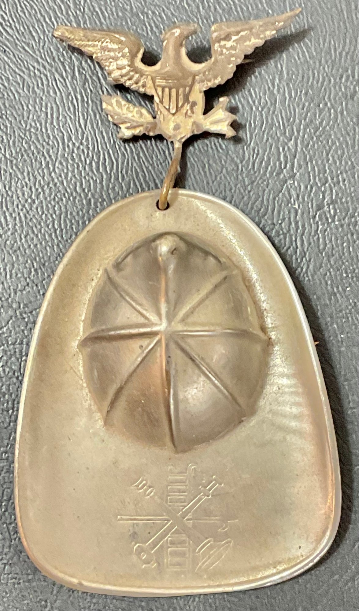 Vintage Fireman Convention Pin - stamped metal - 3.5” long x 1 7/8” wide - good used condition