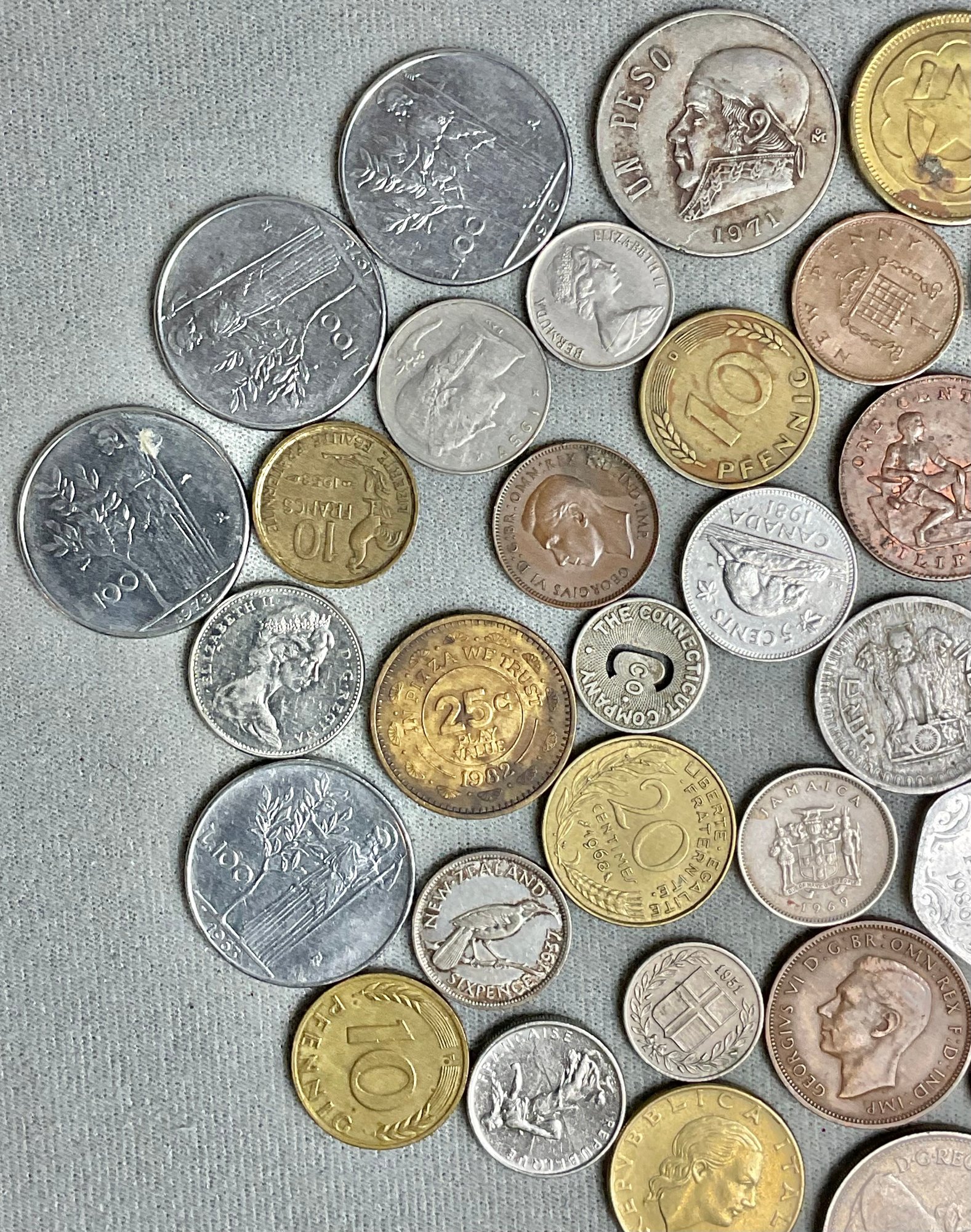 Vintage Foreign Coins - as found in dresser - nice assortment - good used condition