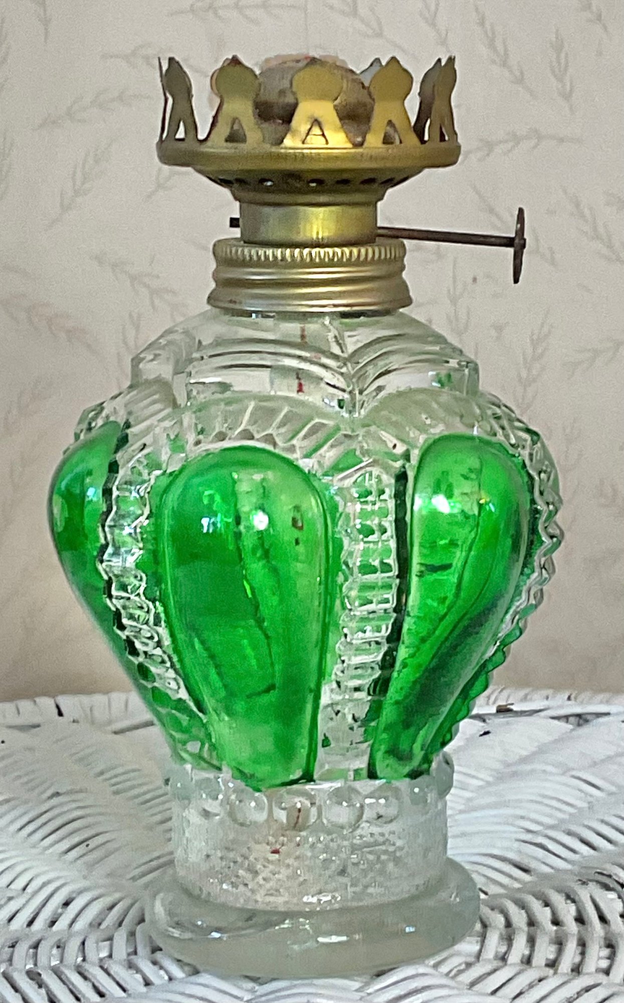 Vintage Glass Oil Lamp - made Hong Kong - 7” tall - good used condition