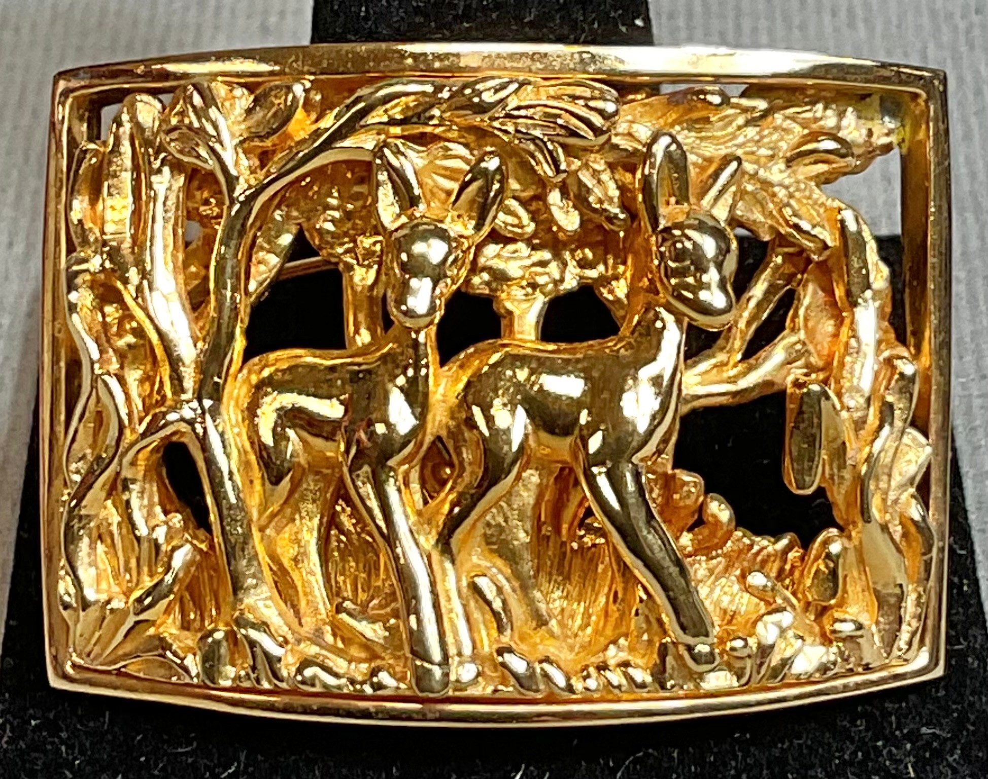 Vintage Gold Tone Napier Deer Brooch/Pin - 1.5” x 1.25” - good used condition