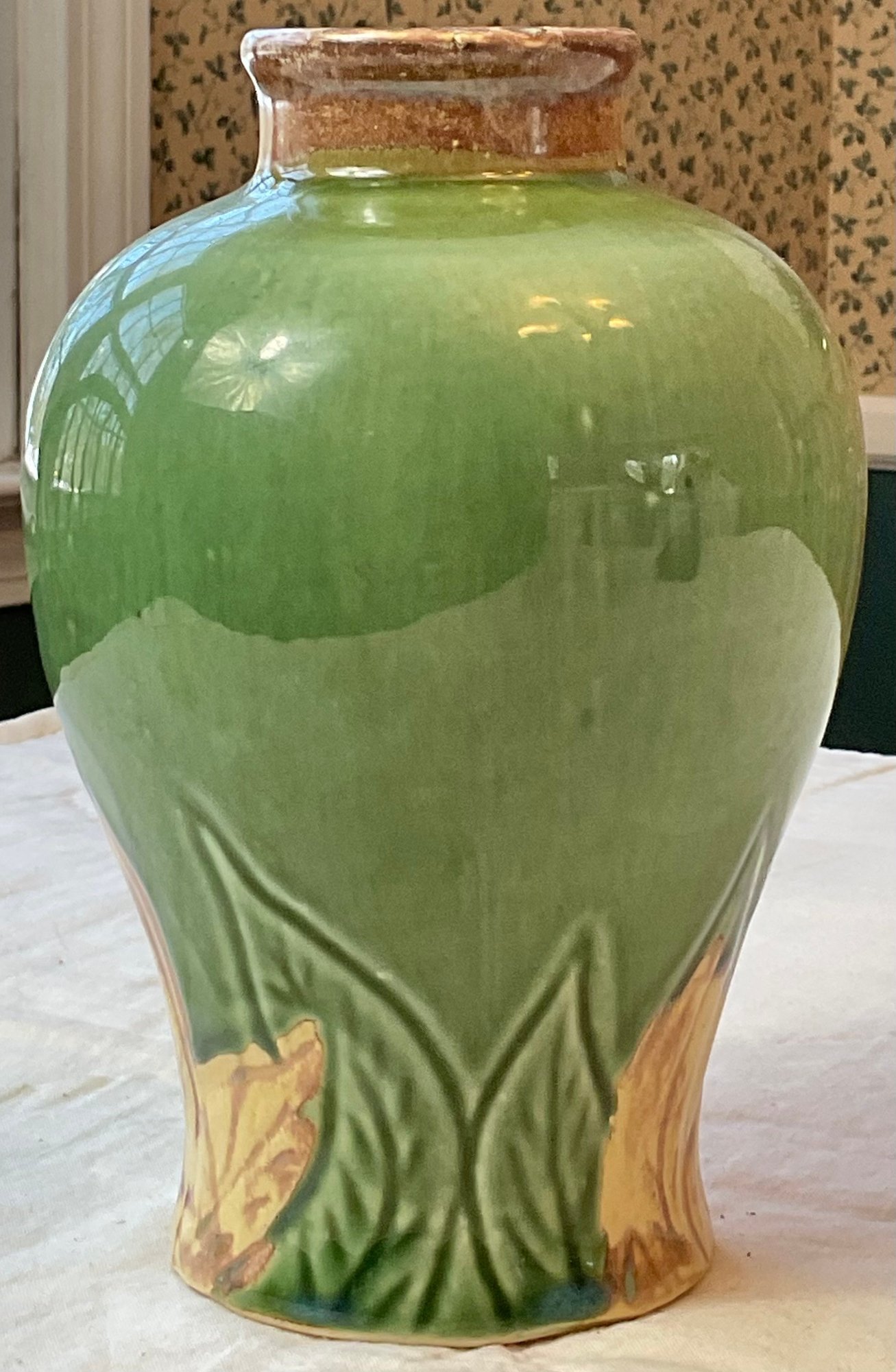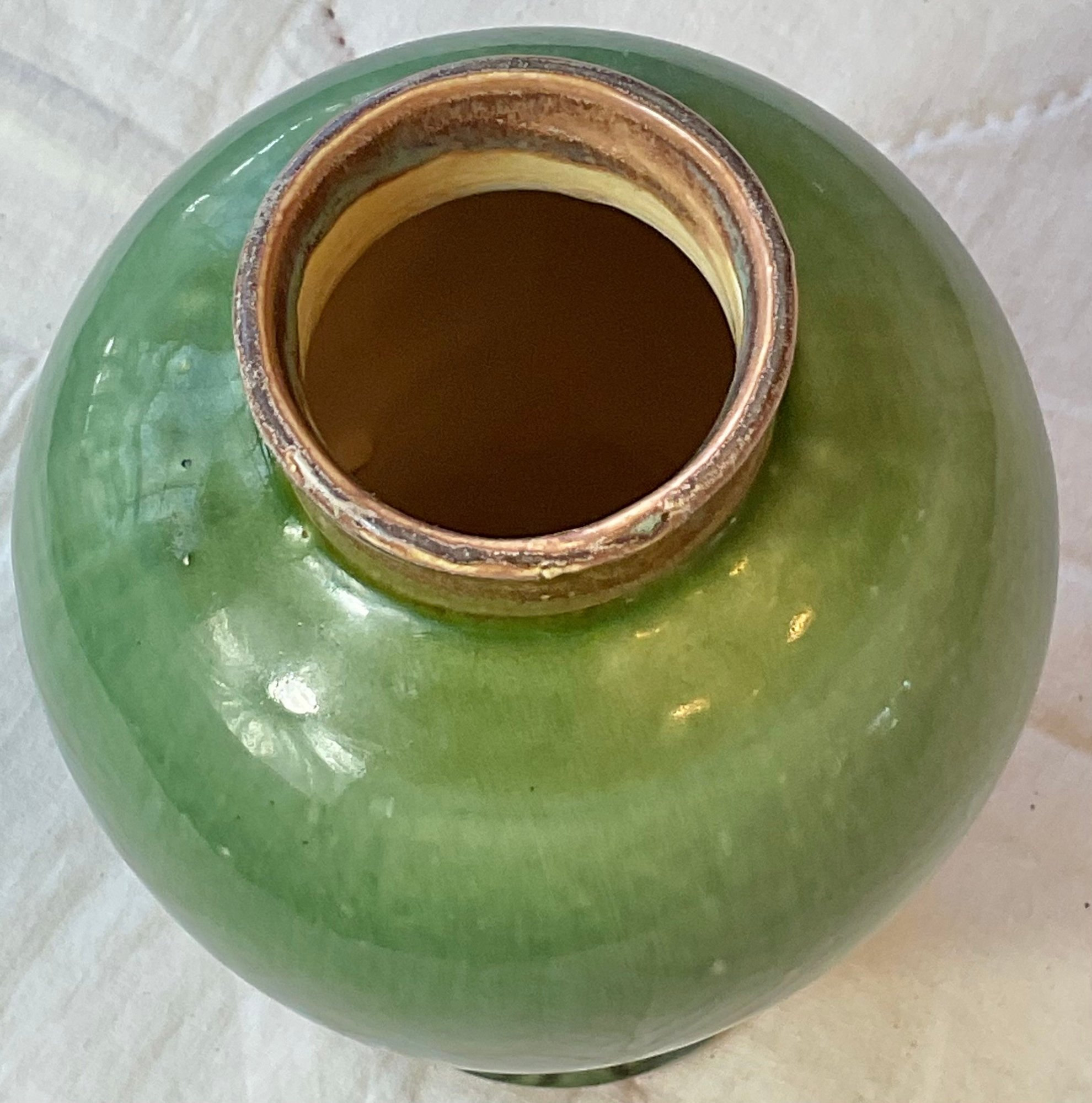 Vintage Green Glaze Vase - no chips - 7” tall - good used condition