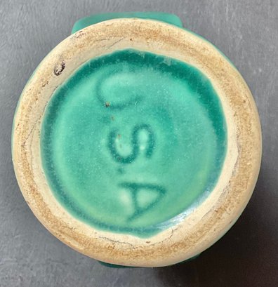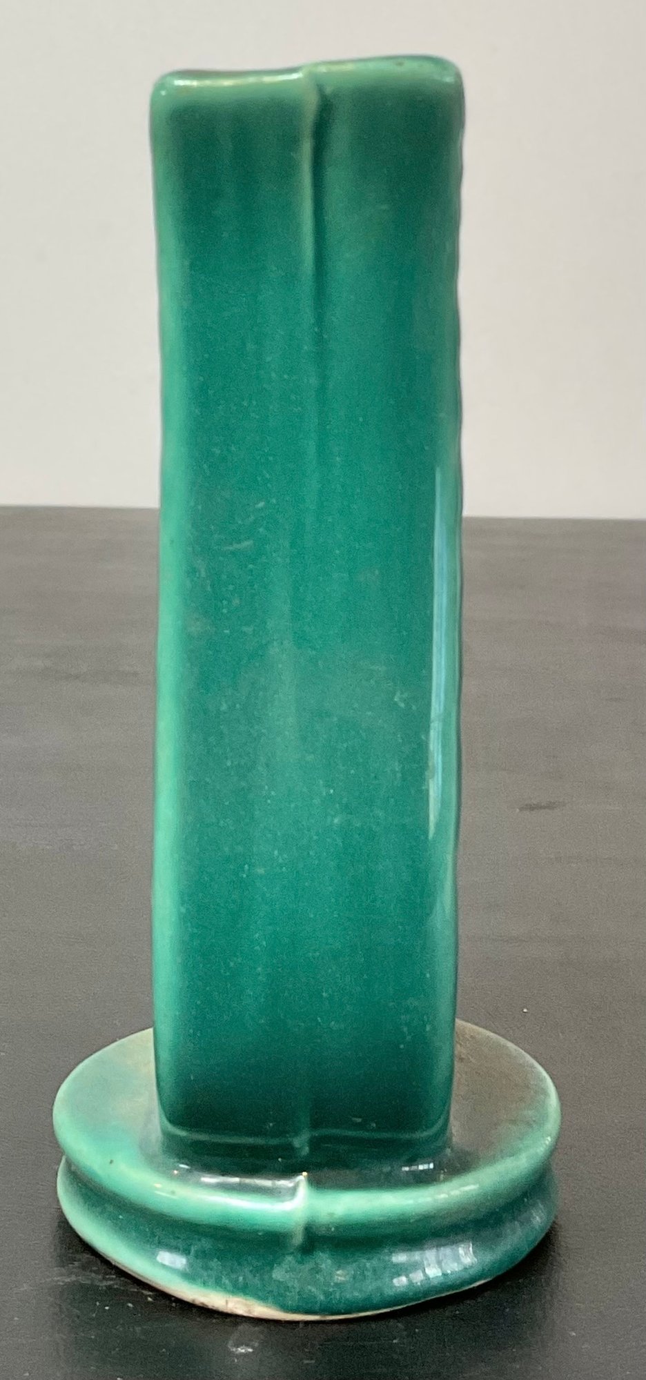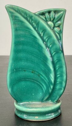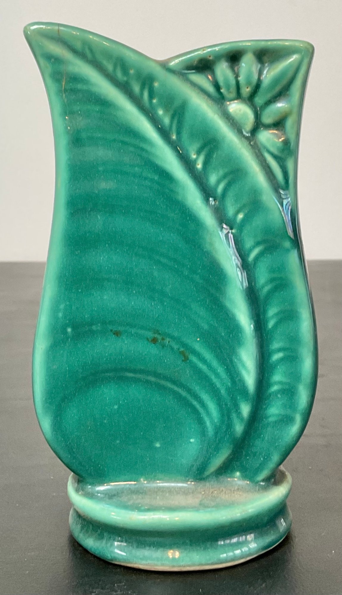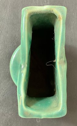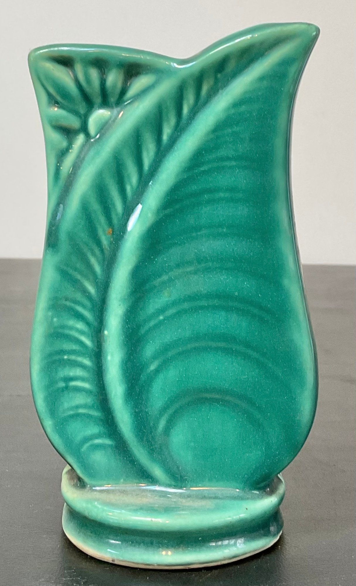 Vintage Green Leaf Ceramic Vase - no chips - 5.5” tall x 3” long x 2 3/8” wide - good used condition