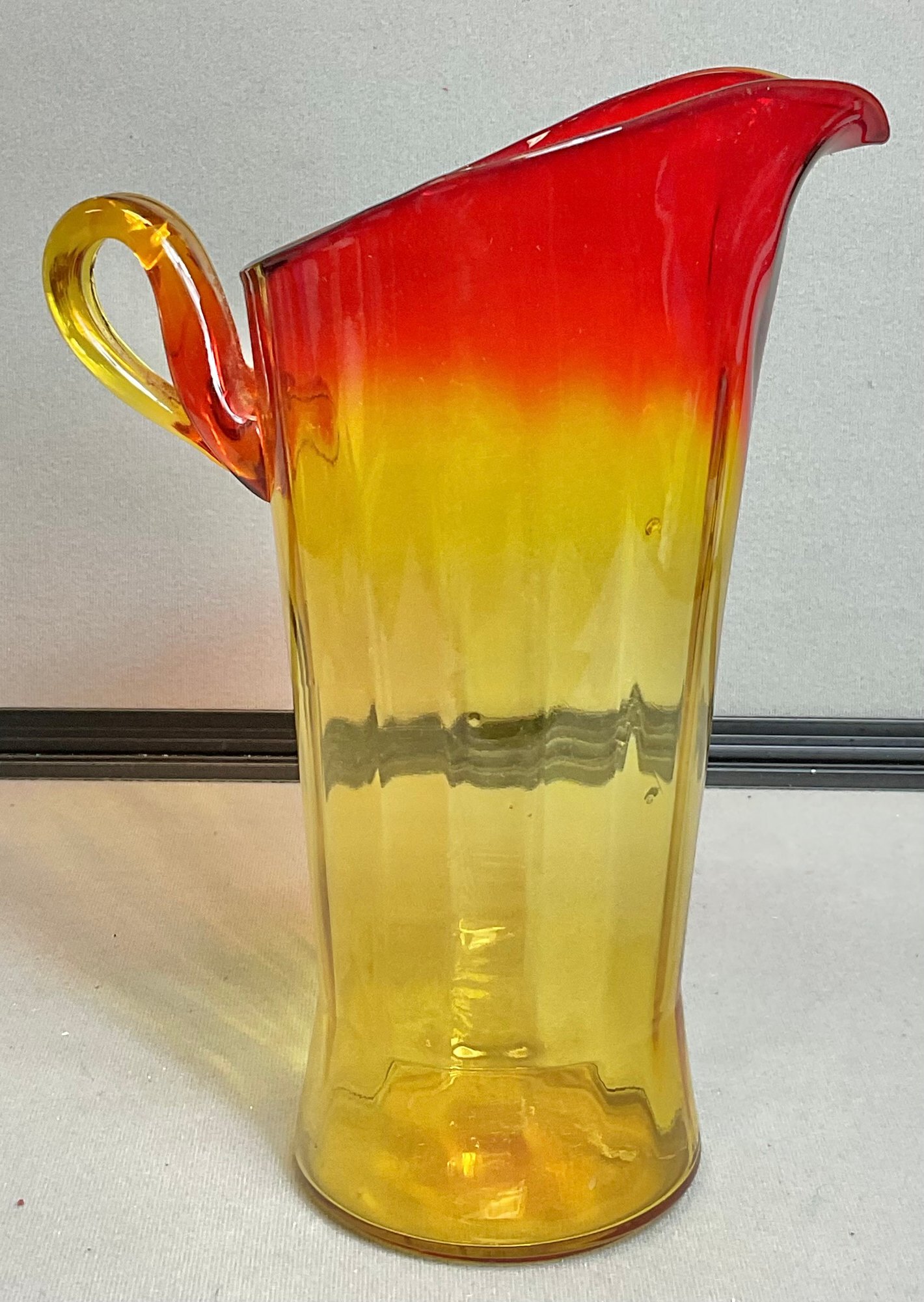 Vintage Hand Blown Amberina Glass Pitcher - no chips - 10.75” tall x 7.75” long x 5” wide - good used condition