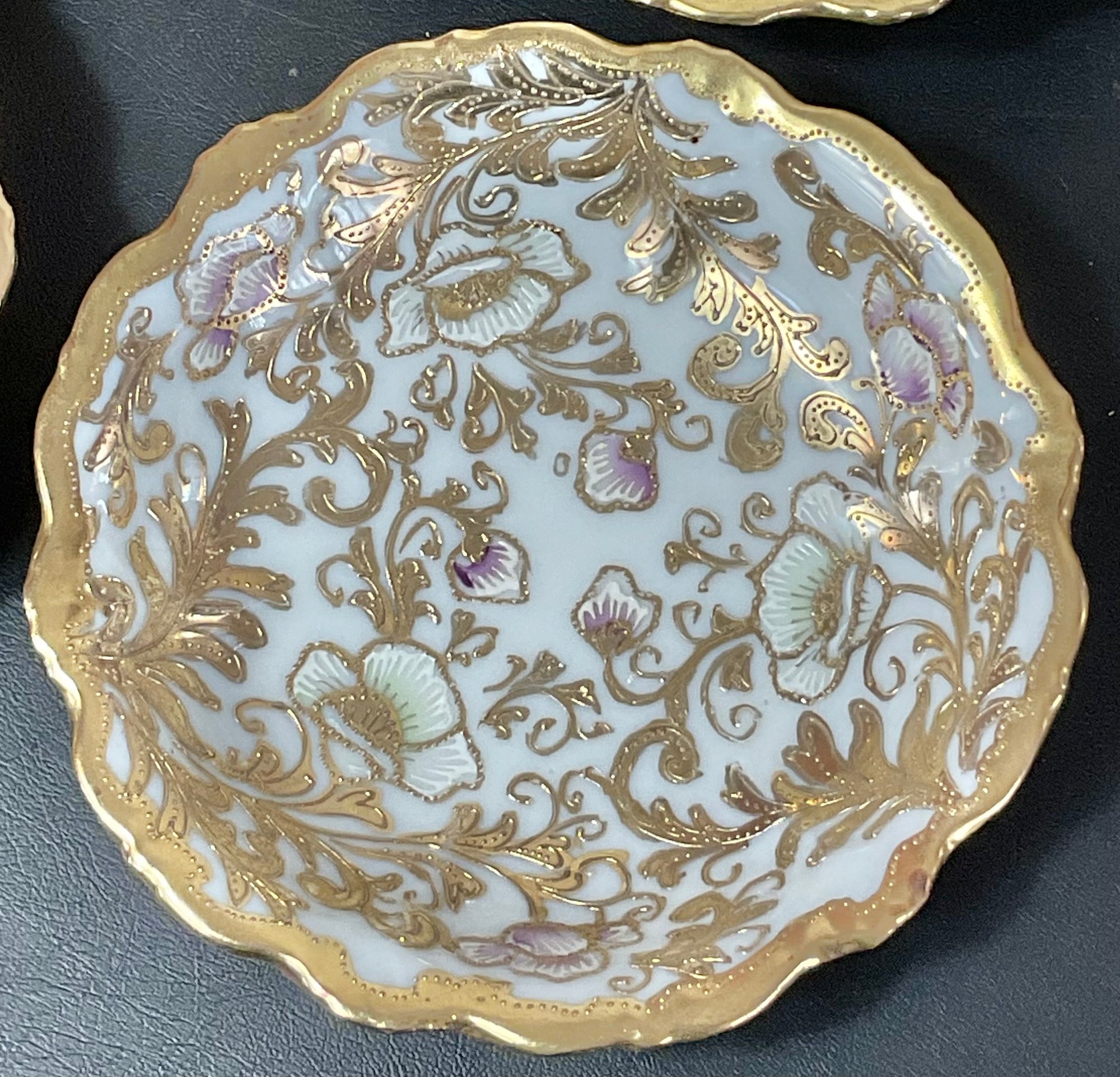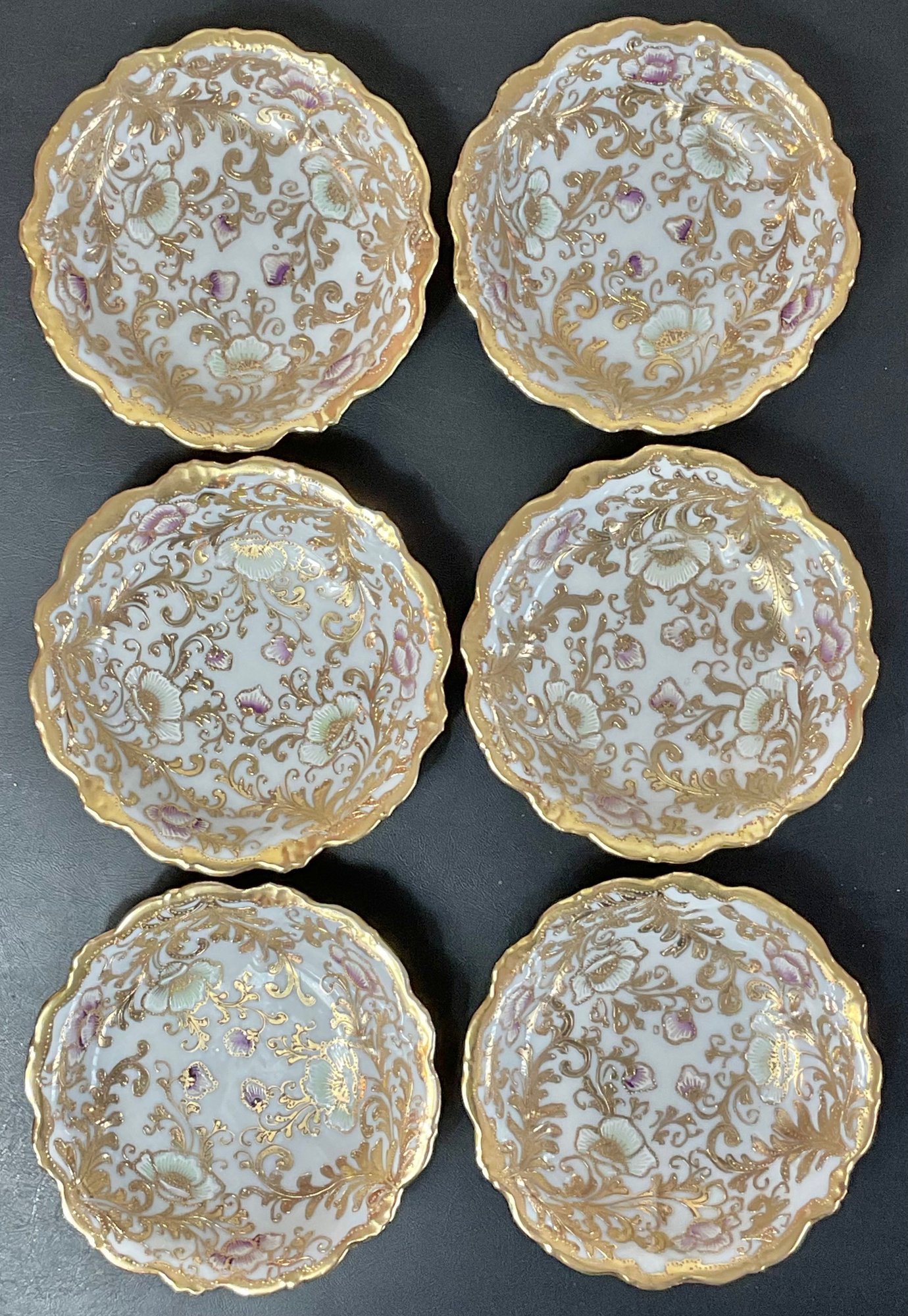 Vintage Hand Painted Gold Moriage Bowls - Japan - no chips - 1.25” tall x 5 5/8” wide - good used condition