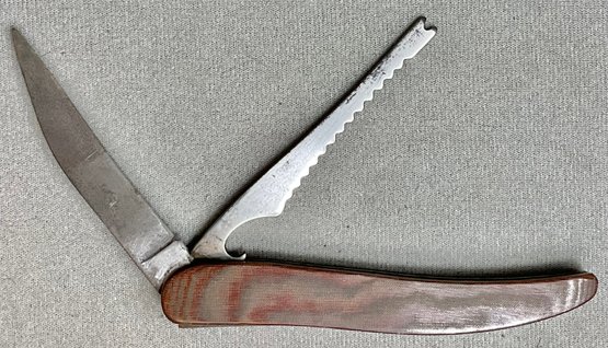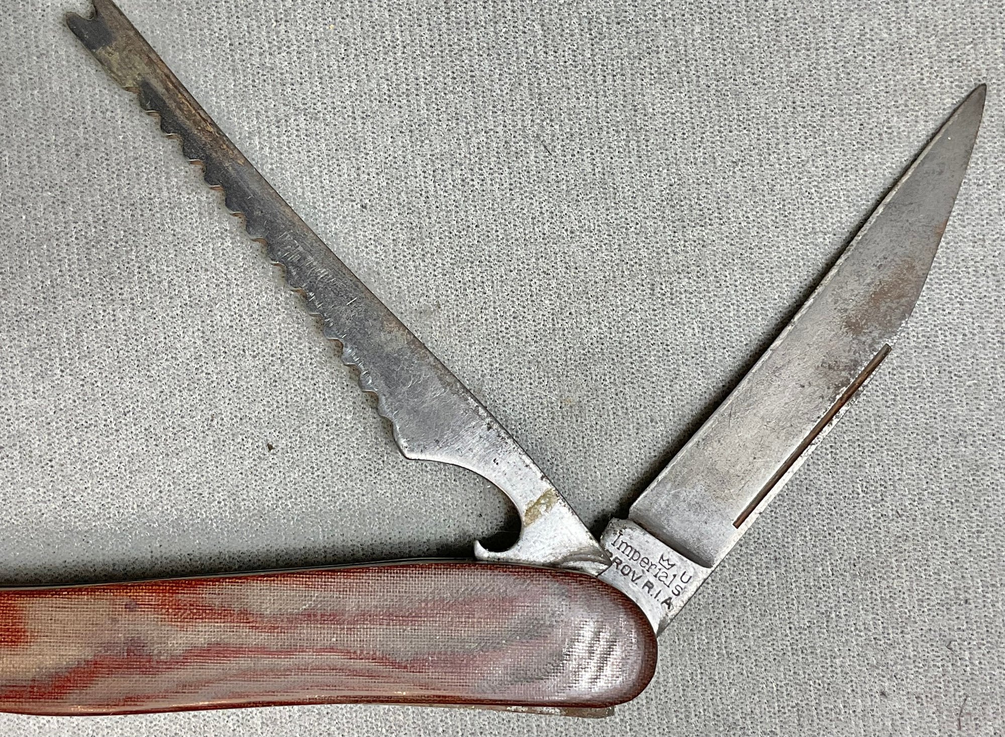 Vintage Imperial Providence Fishing Knife - 2 Blade - faux wood handle - crown mark - 4.25” closed - blade 3” - good used condition