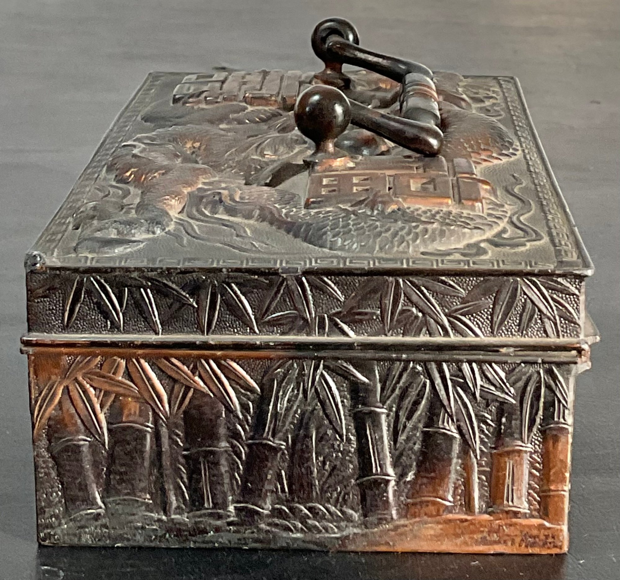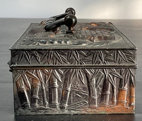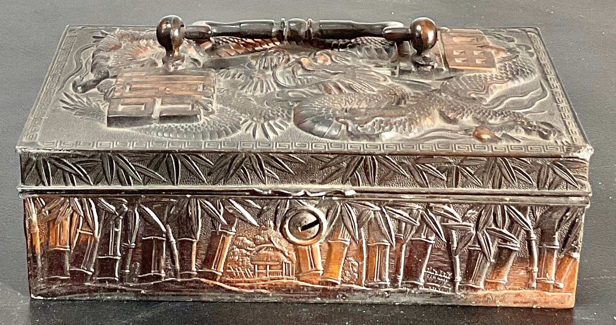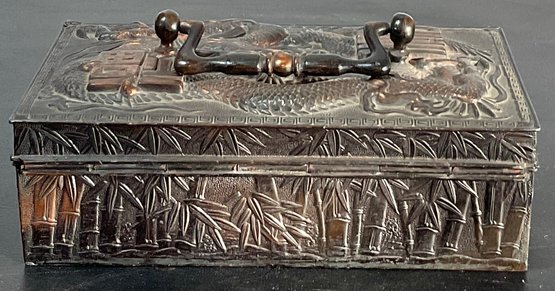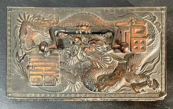 Vintage Japanese Dragon Jewelry Box - no key - 2.5” tall x 6” long x 3.5” wide - good used condition