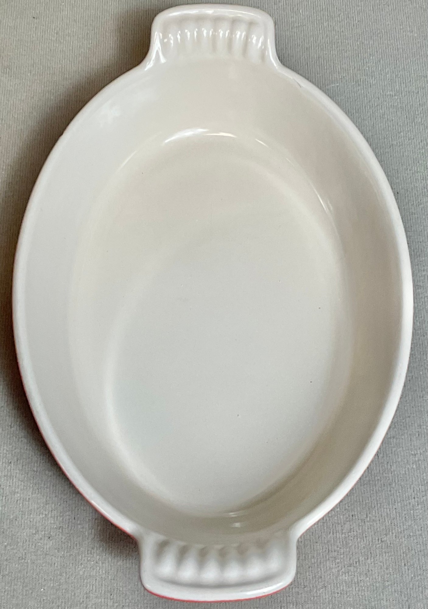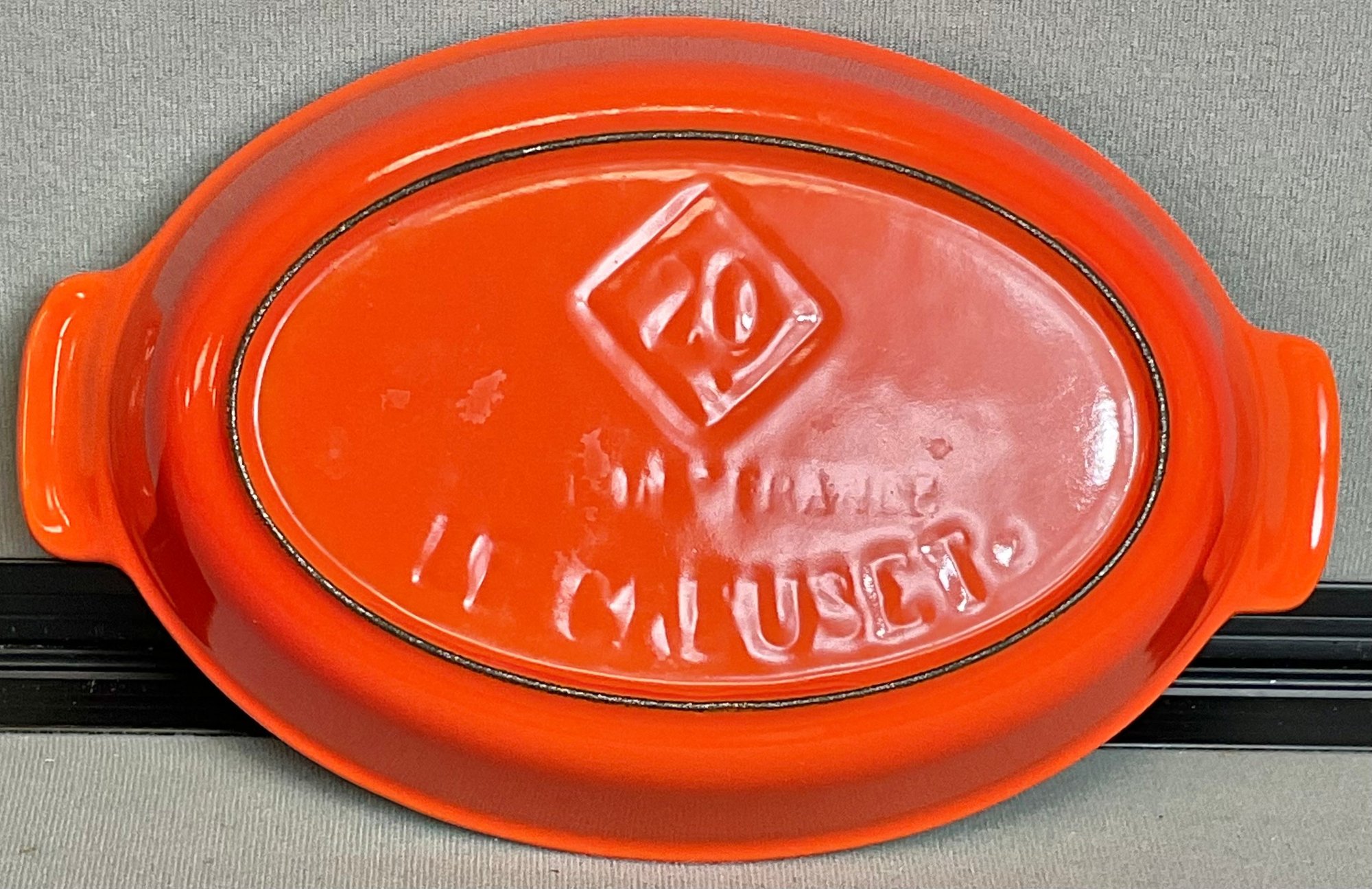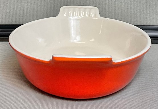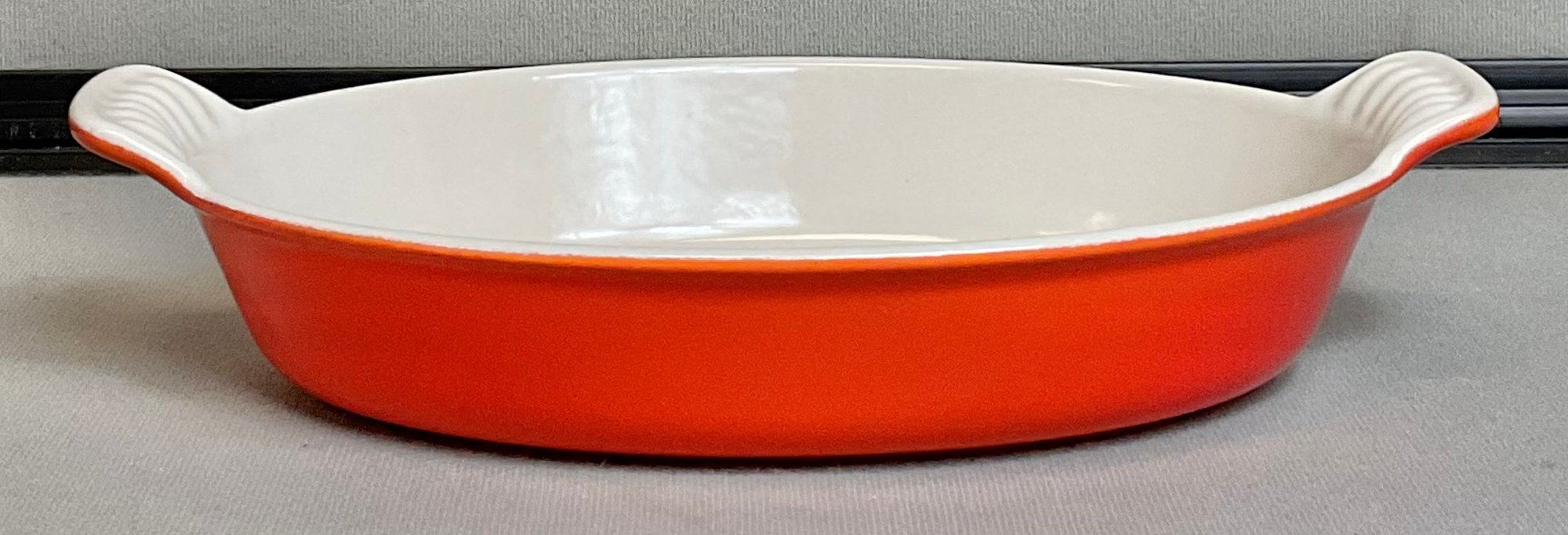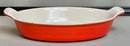 Vintage Le Creuset Enamel On Cast Iron Au Gratin Dish - Flame Orange - 2” tall - 9 3/8” long - 5 7/8” wide - good used condition
