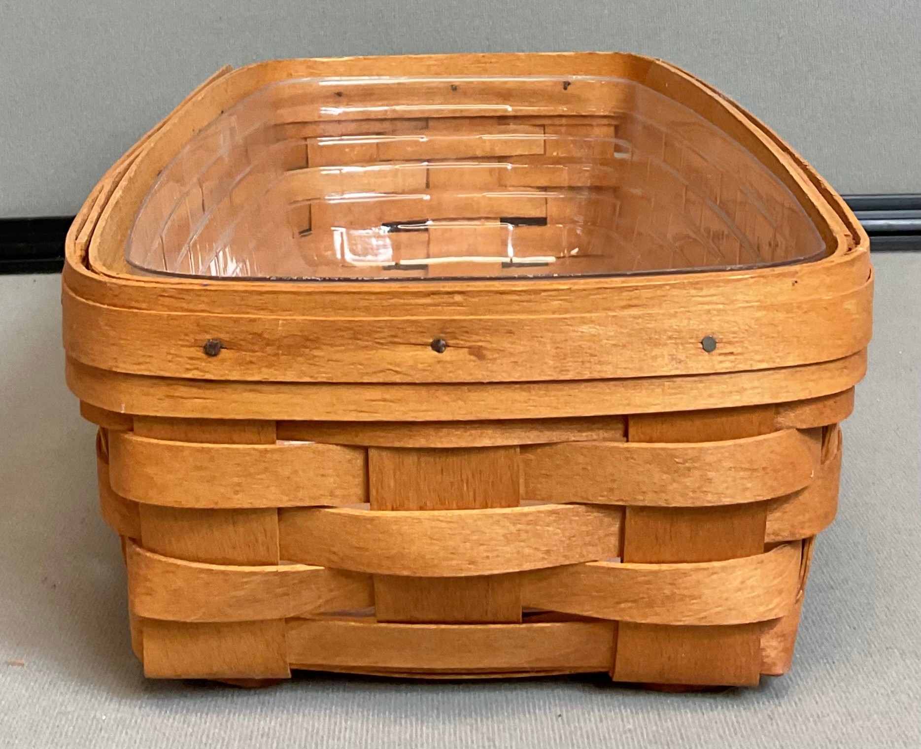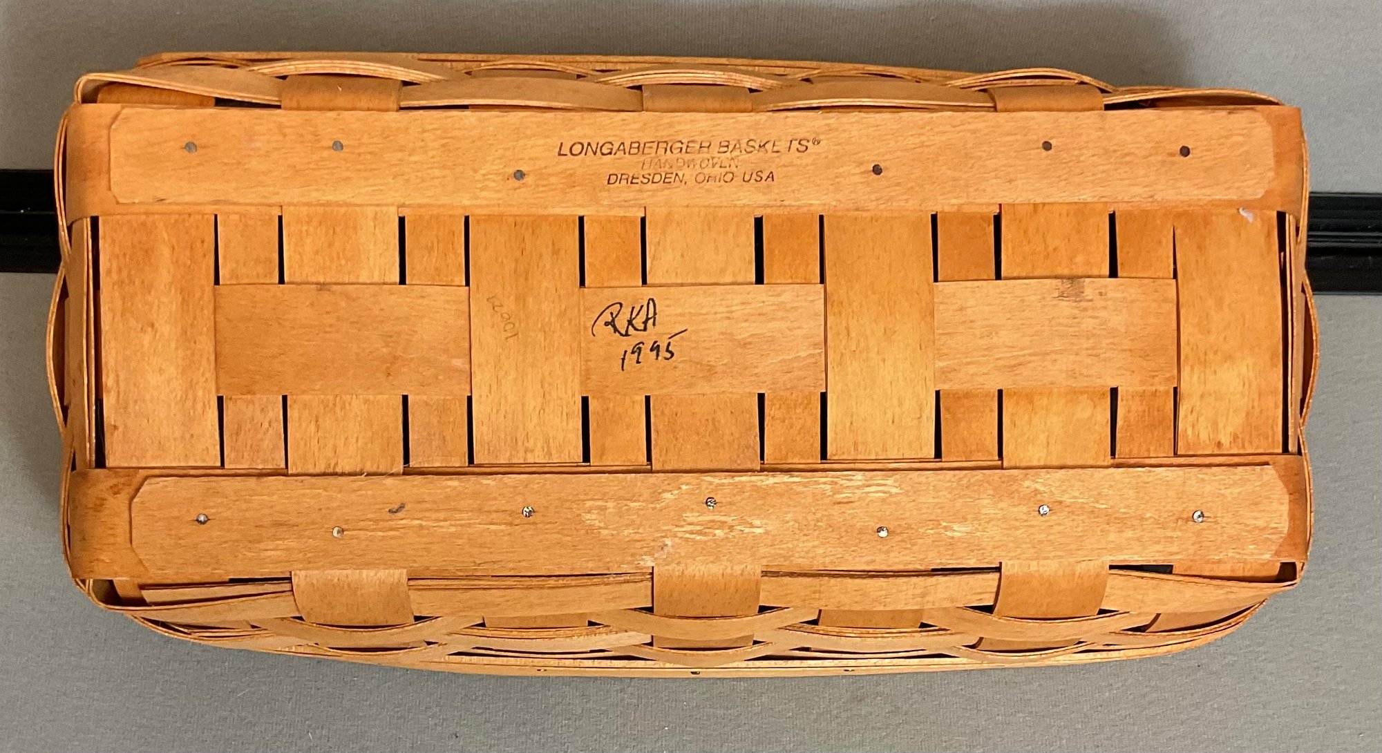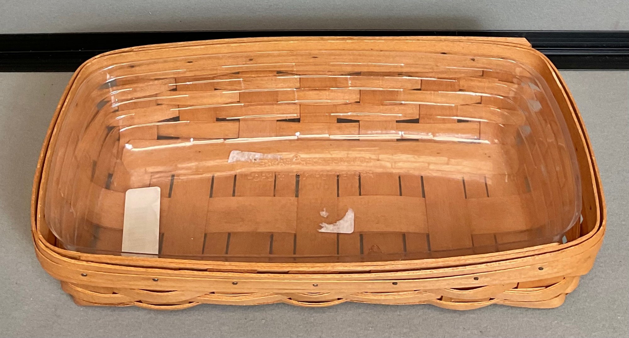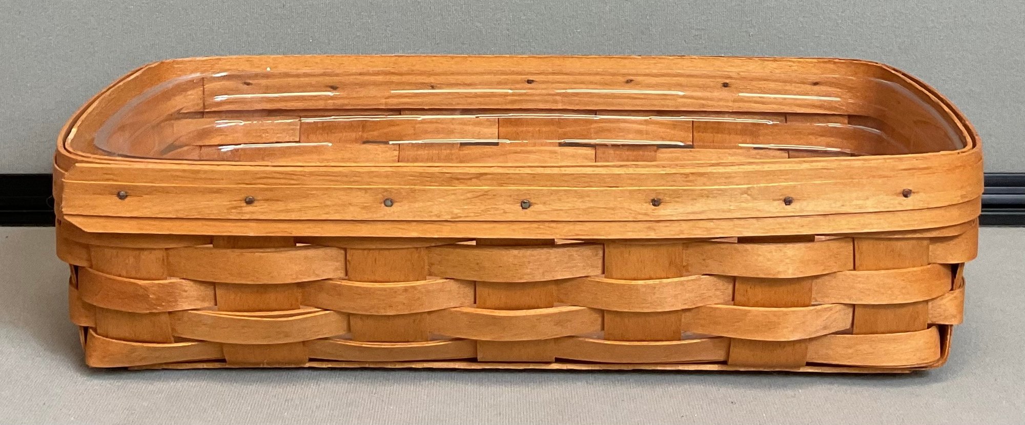 Vintage Longaberger Bread Basket - plastic liner - 3.75” tall x 14 5/8” x 7.5” - good used condition