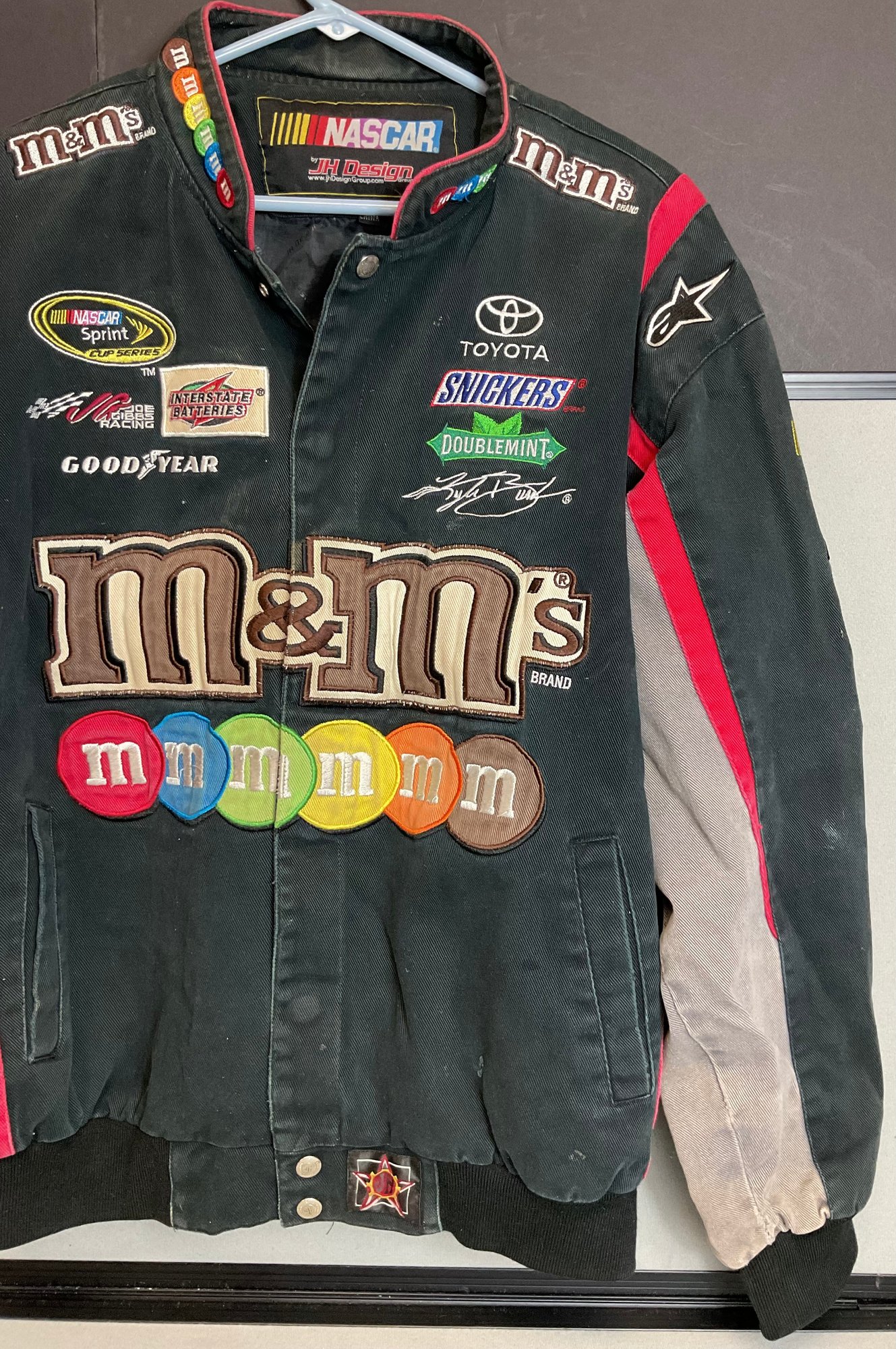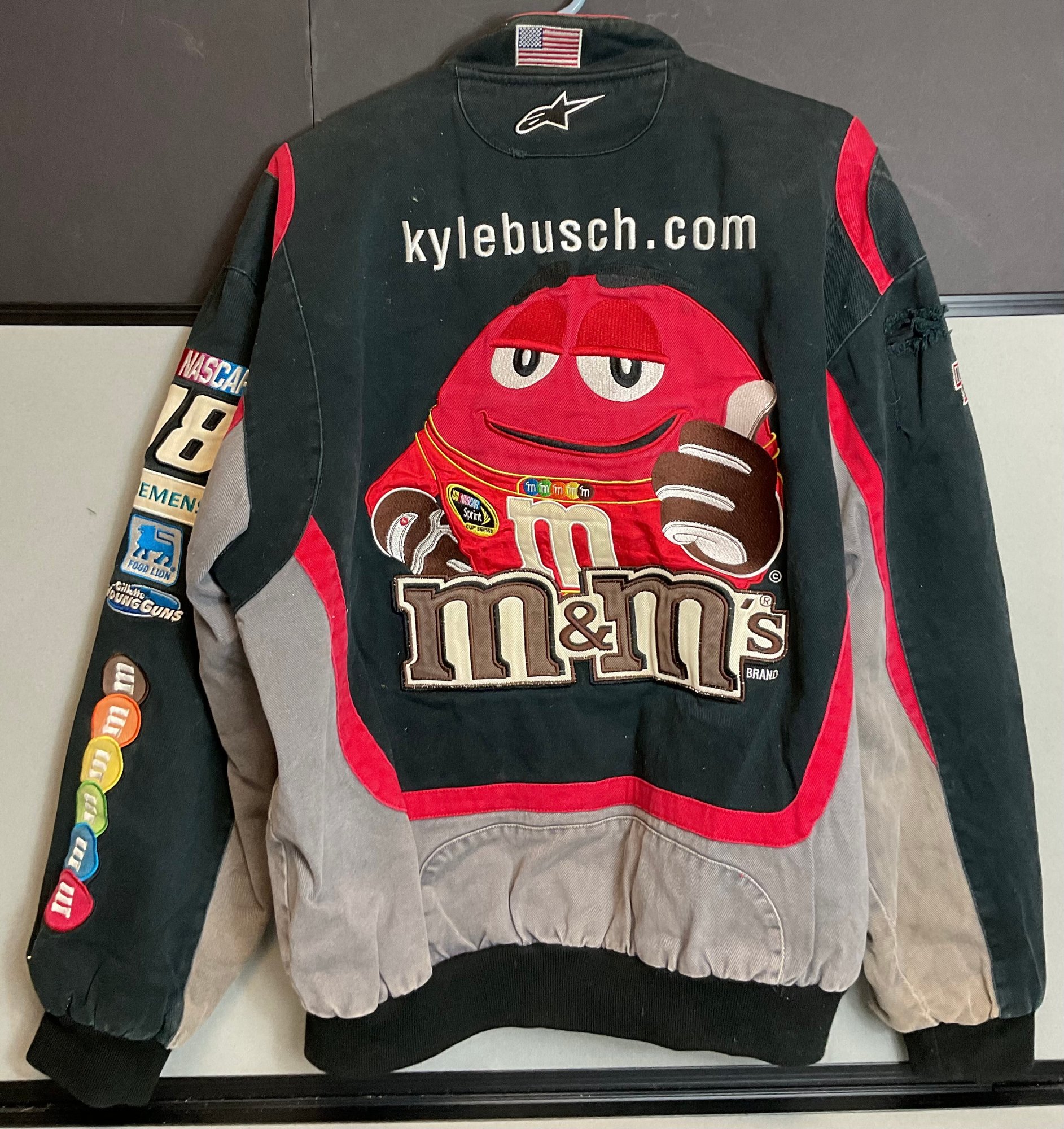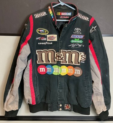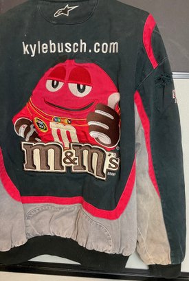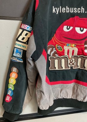 Vintage NASCAR Kyle Busch M&M Jacket - size L - JW Design - has rip on sleeve - good used condition