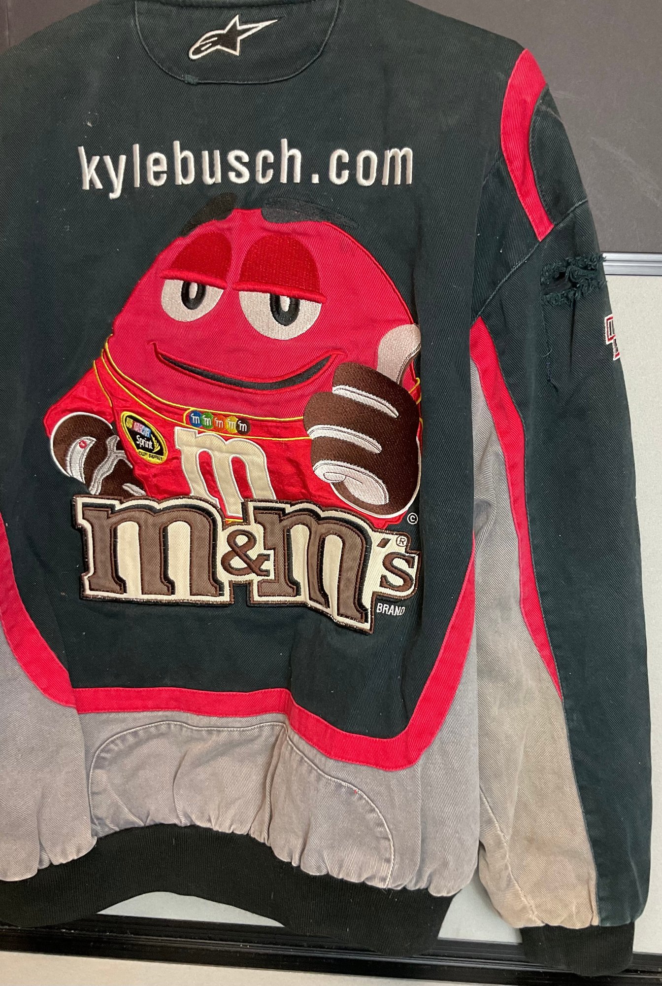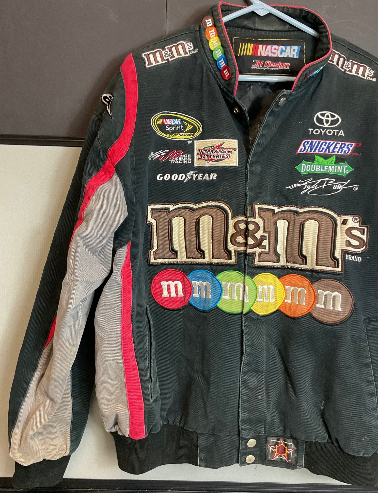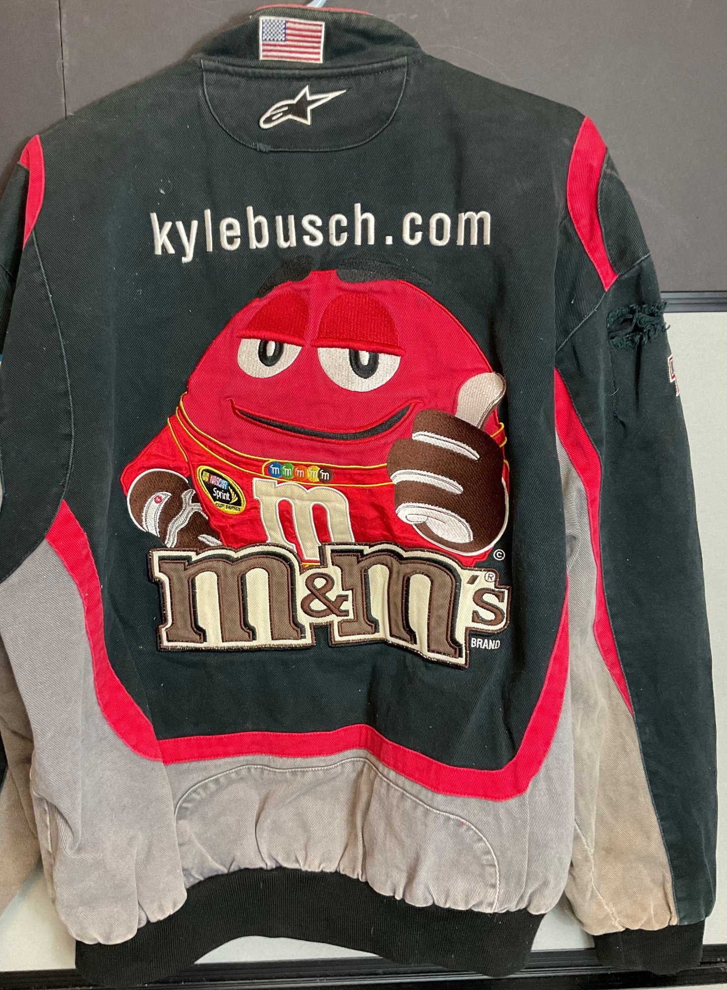 Vintage NASCAR Kyle Busch M&M Jacket - size L - JW Design - has rip on sleeve - good used condition