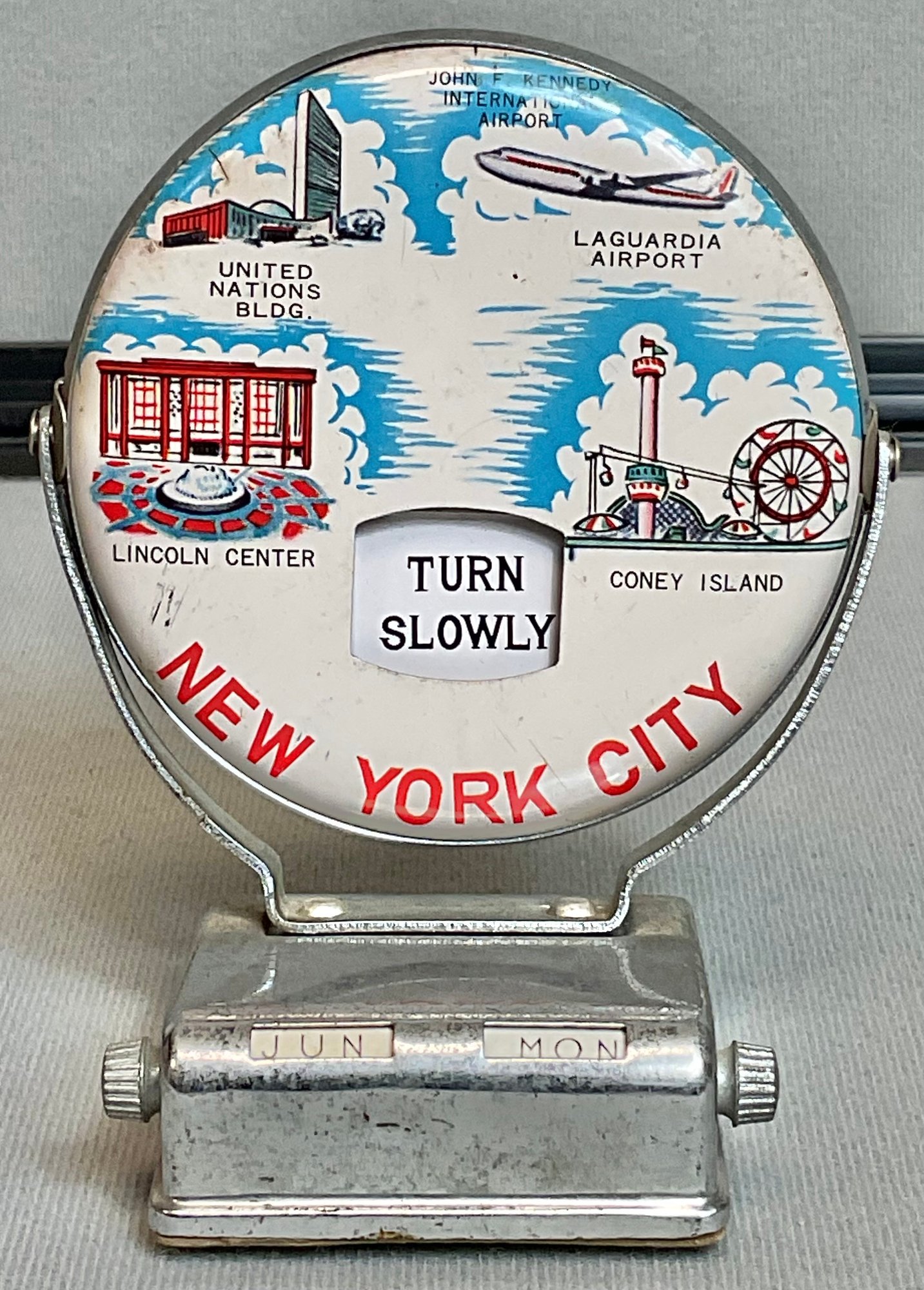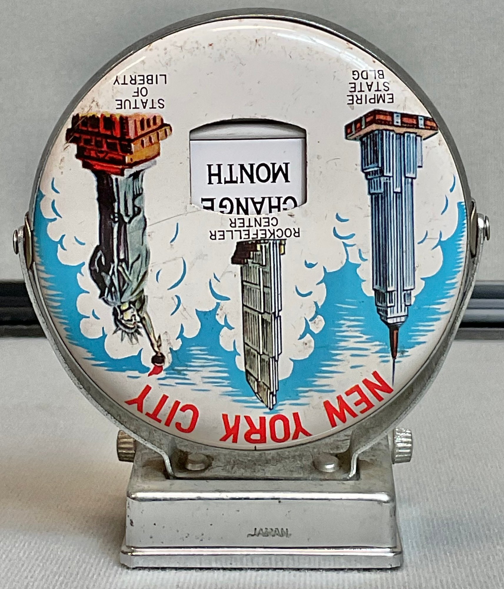 Vintage New York City Perpetual Desk Calendar - two sided - 4 3/8” tall x 3.75” long x 2.25” wide - good used condition