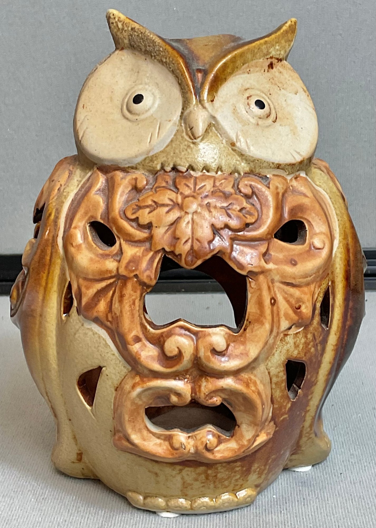 Vintage Pottery Owl Votive Candle Holder - no chips - 7” tall x- good used condition