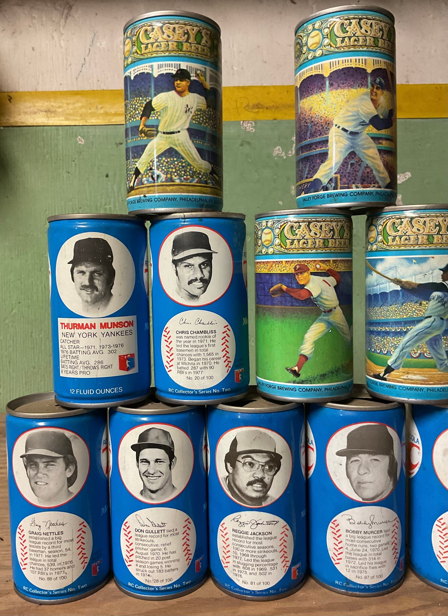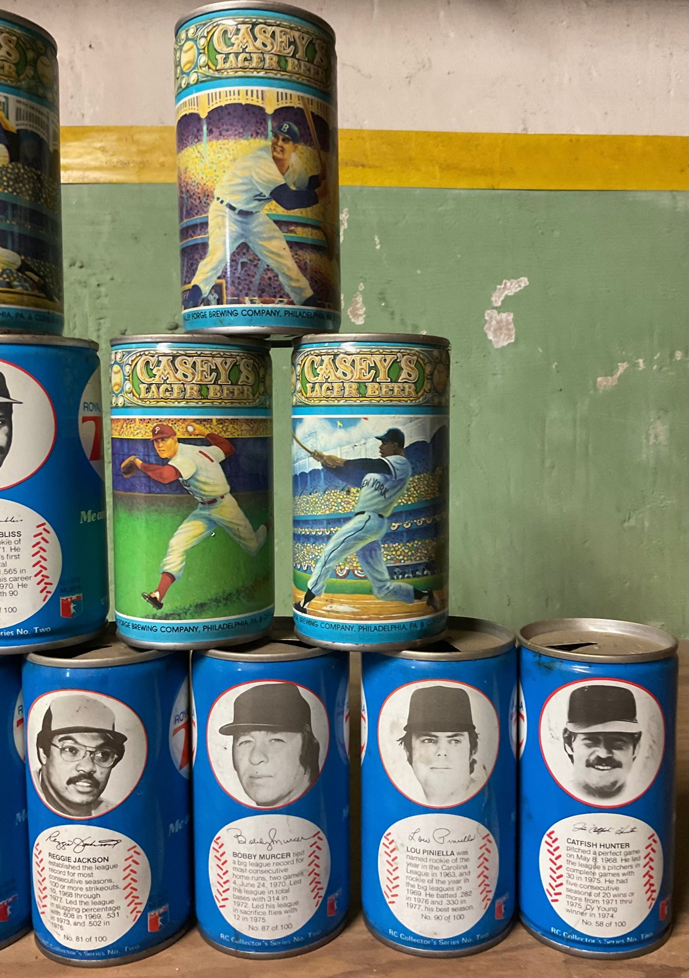 Vintage RC Cola & Casey’s Lager Baseball Cans - cool flashback - good used condition