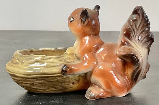 Vintage Squirrel Ceramic Planter - no chips - 4.5” tall x 7.75” long x 3” wide - good used condition