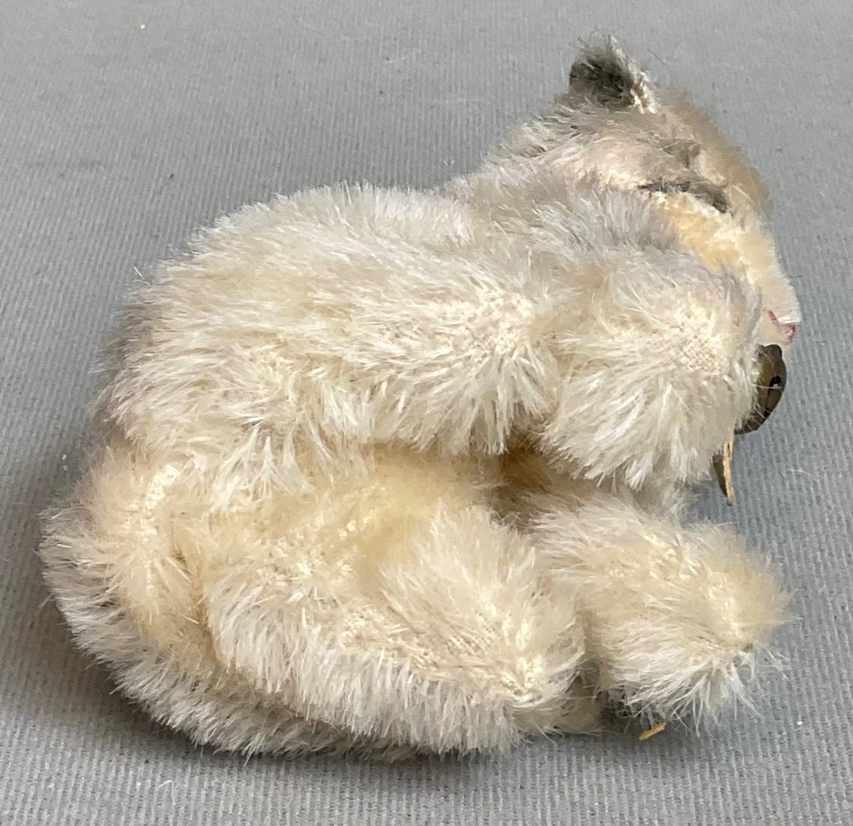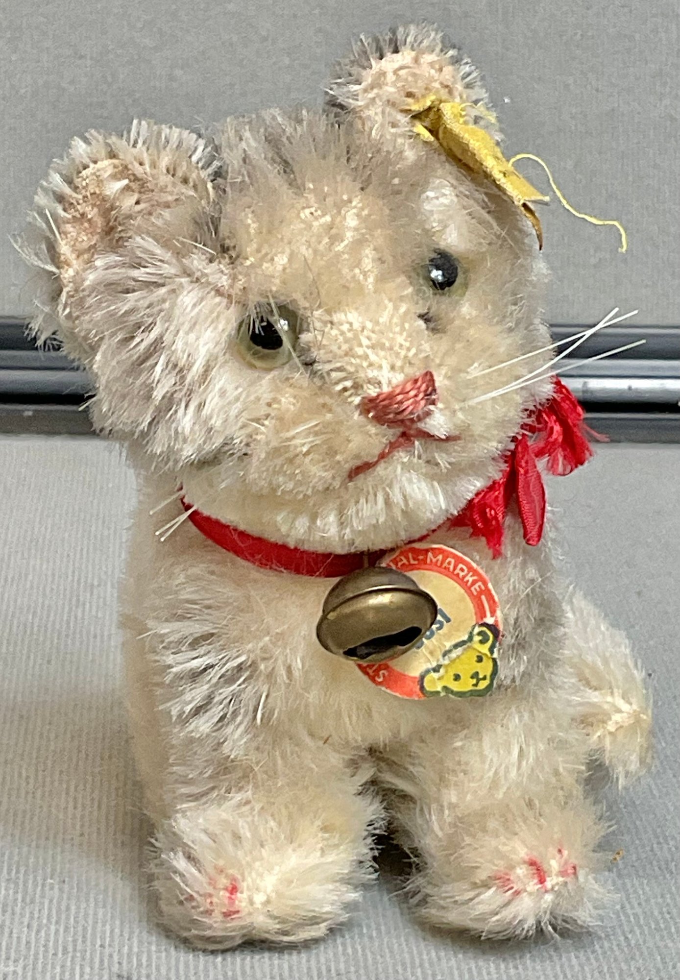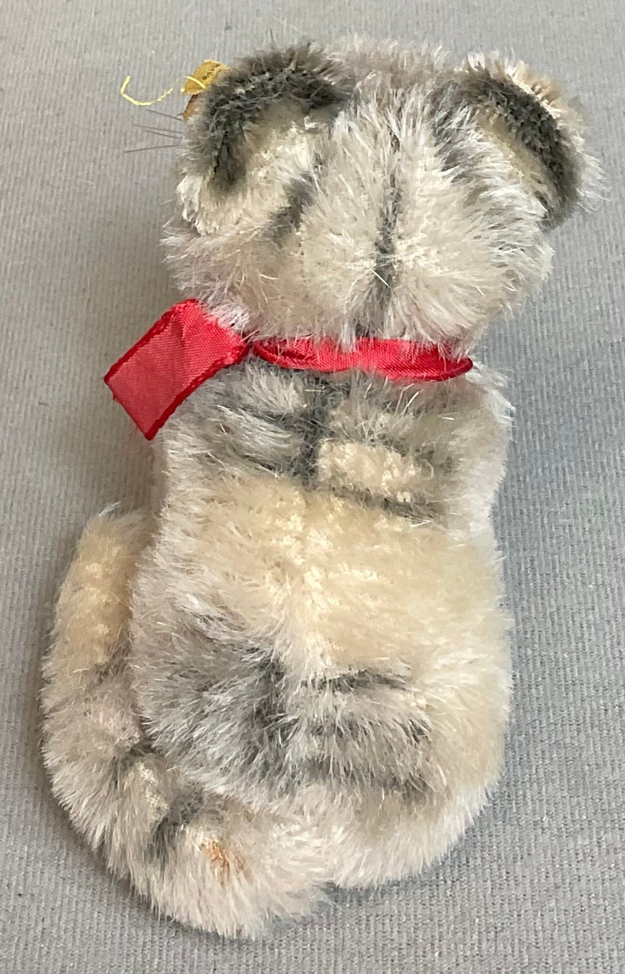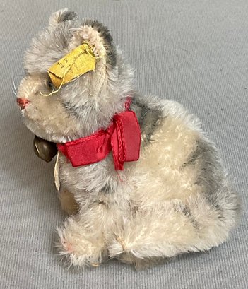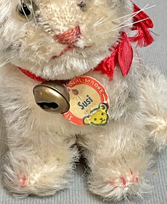 Vintage Steiff Mohair Susi Cat - has ear button and collar tag - 4.25” tall - good used condition