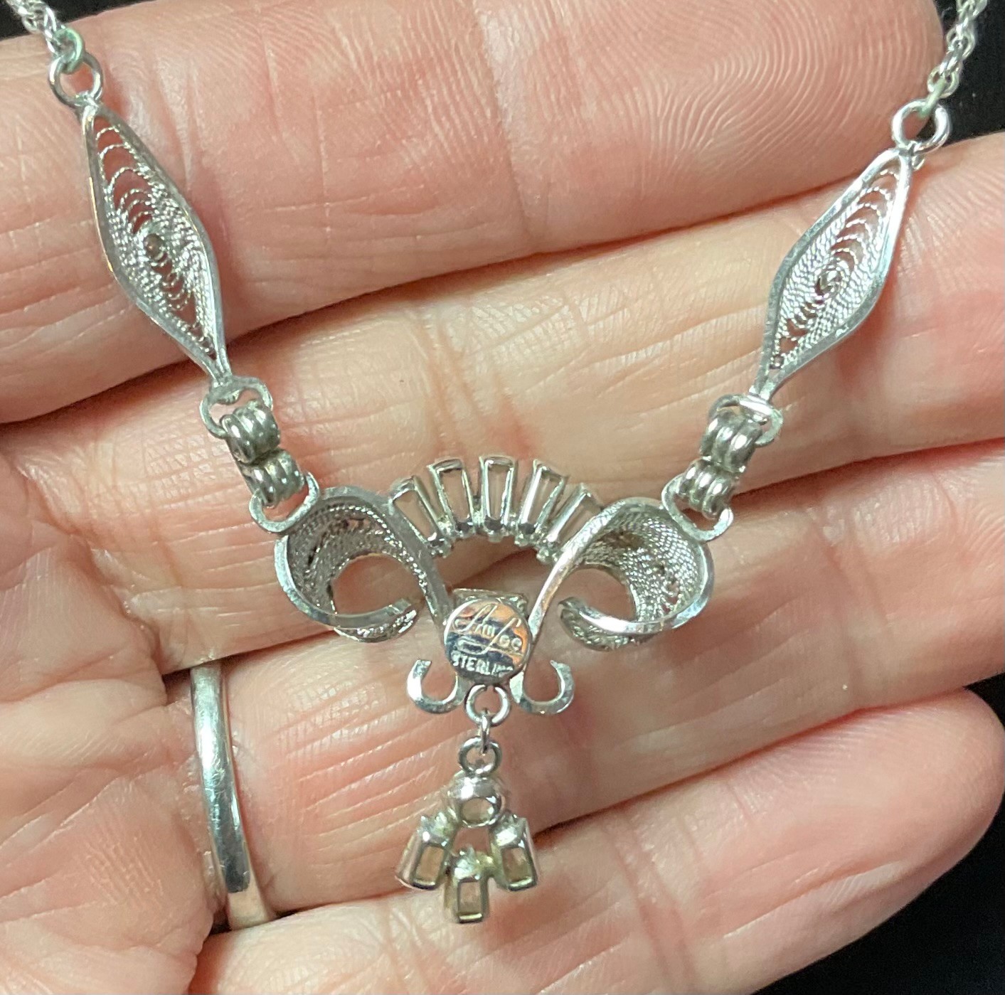 Vintage Sterling Amlee Necklace - 15” - weighs 7.7 grams - good used condition