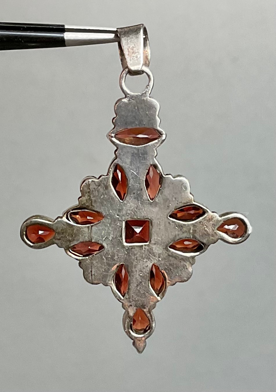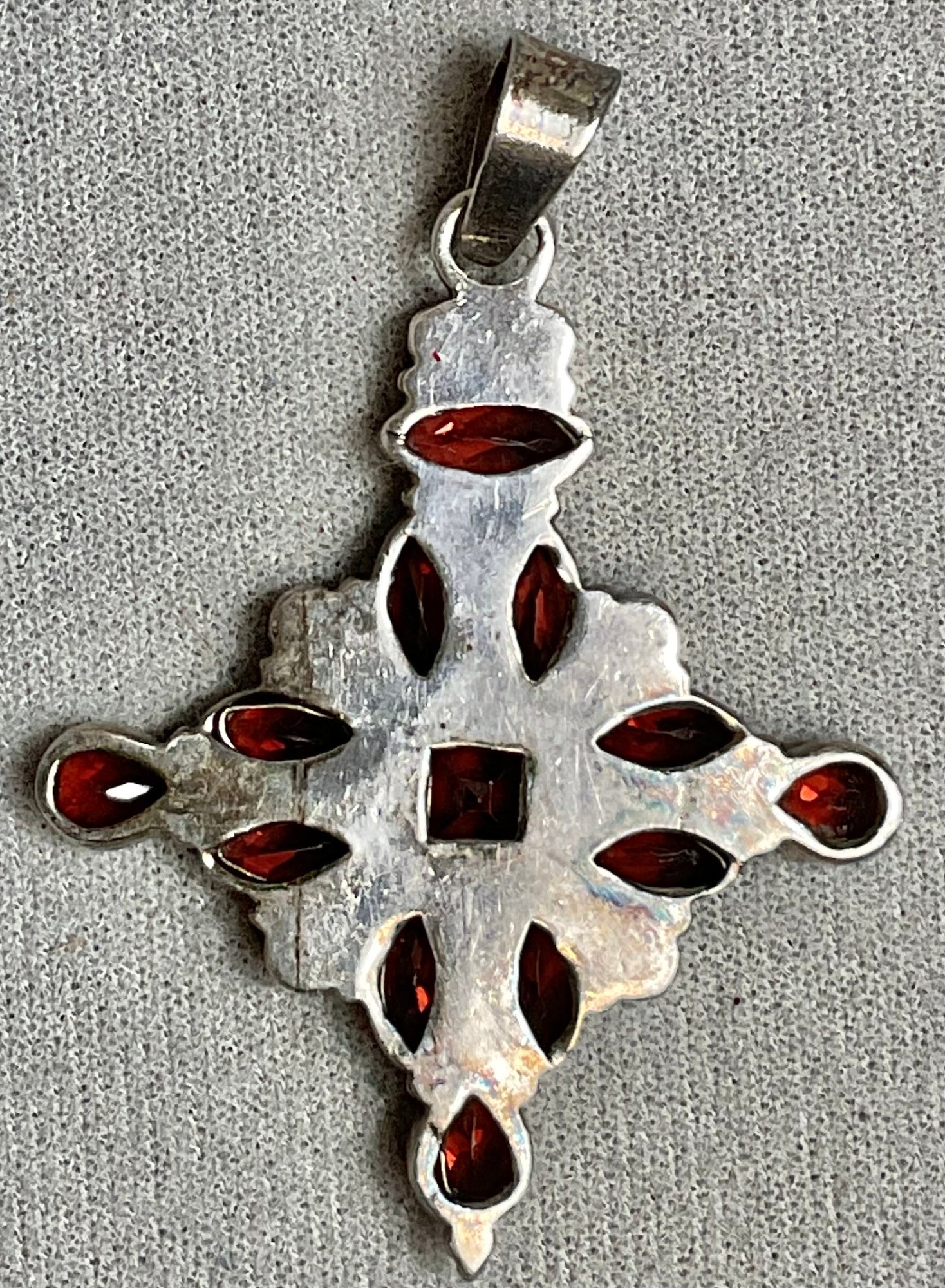 Vintage Sterling Garnet Pendant - unmarked - XRF tested - 2.5” x 1.75” - beautiful pice - good used condition