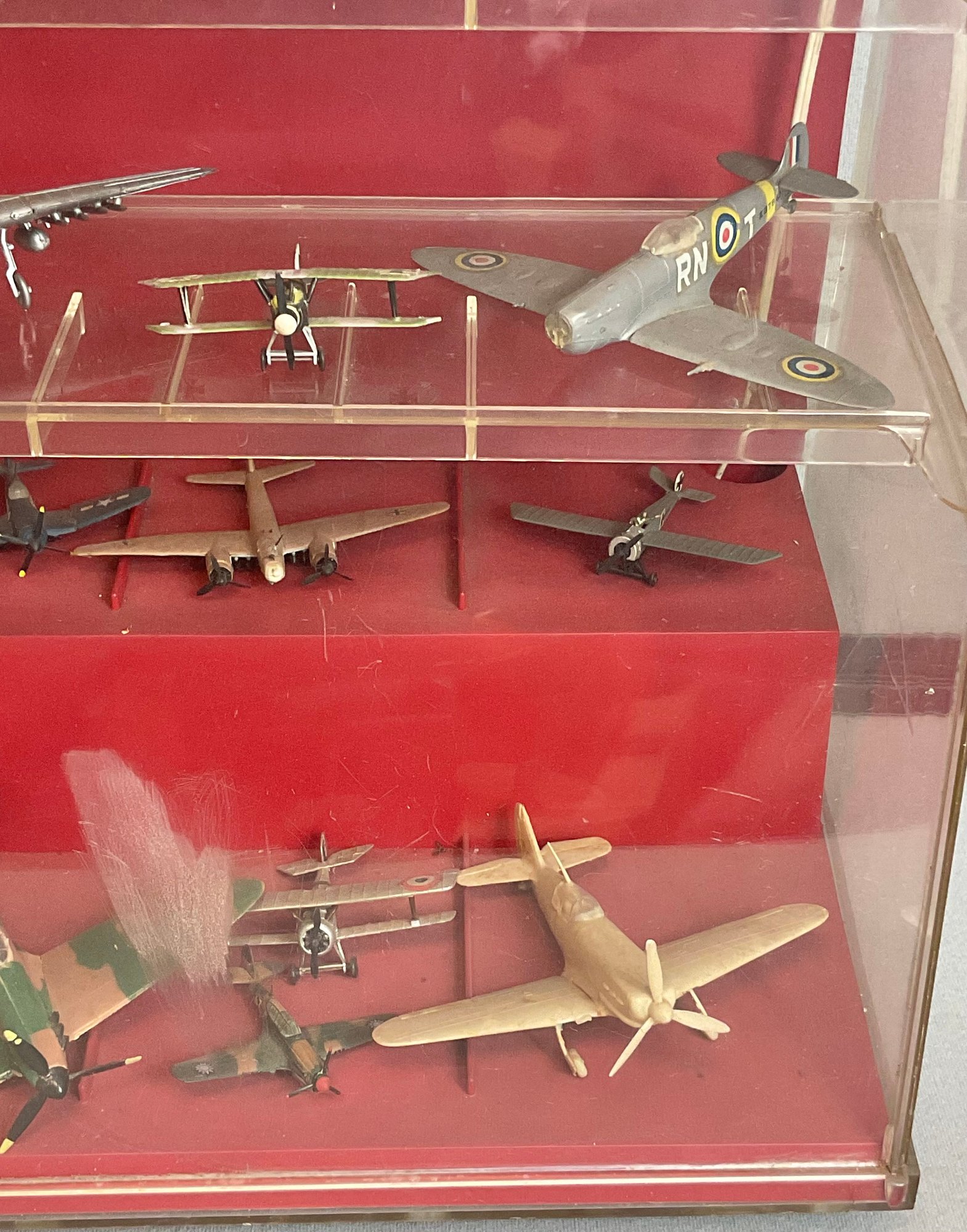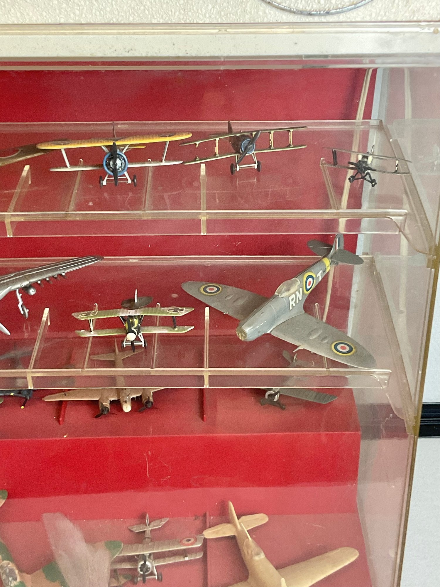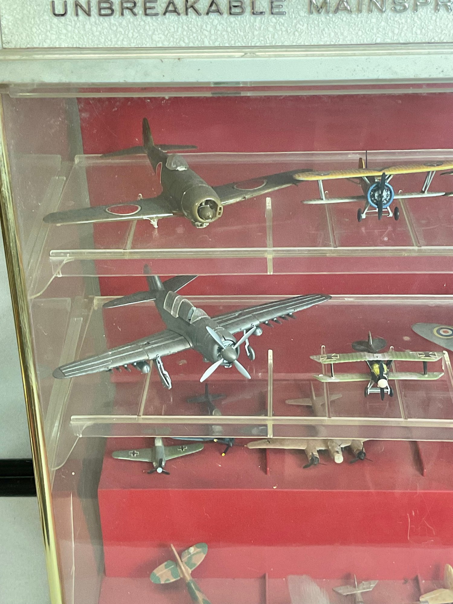 Vintage Timex Watch Store Display W/ Model Airplane Collection - 21.5” tall x 14” long x 10” wide - has scuffs and crack on side - still displays nicely - good used condition