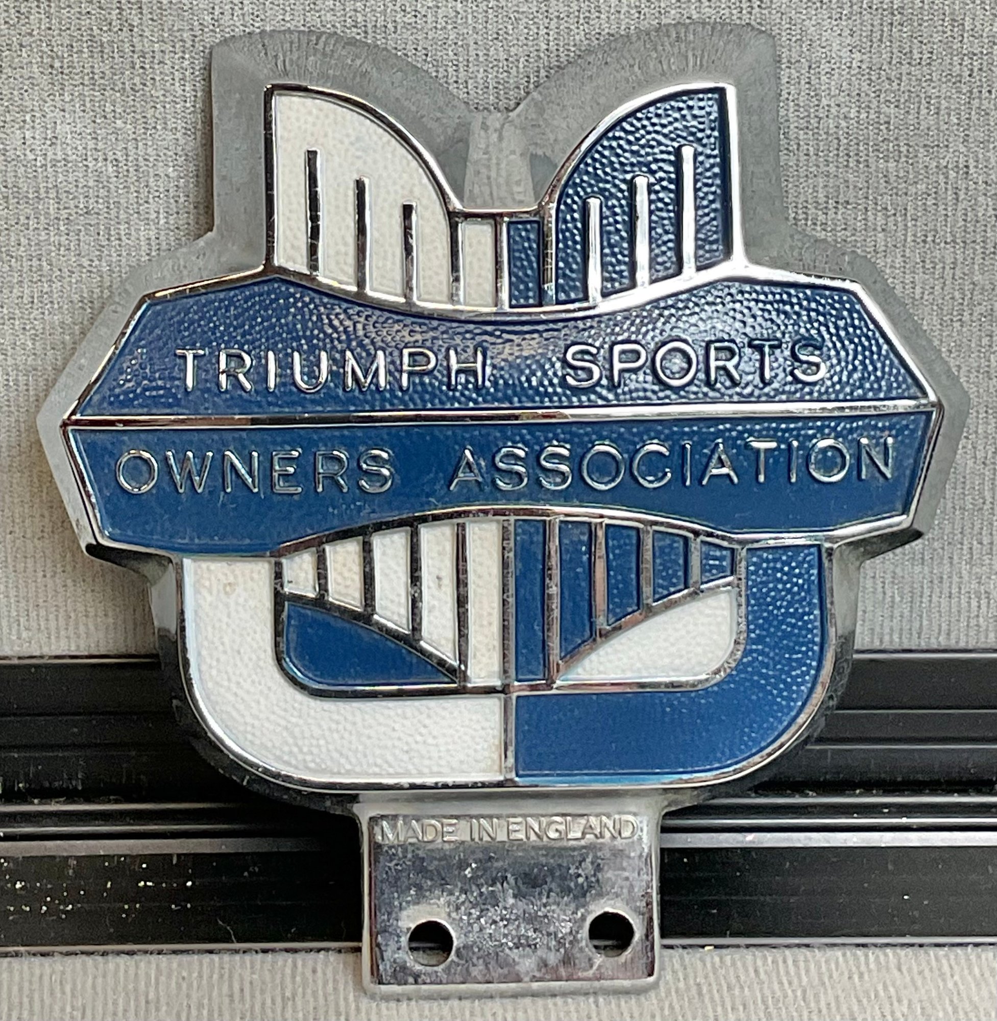 Vintage Triumph Sports Owners Association License Plate Topper - 4” x 4” - good used condition