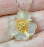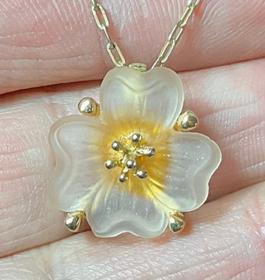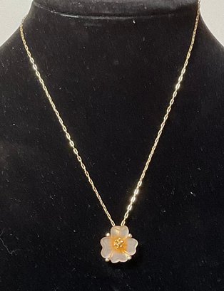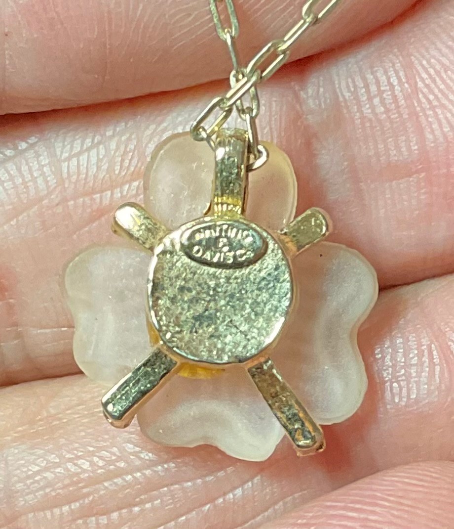 Vintage Whiting Davis Frosted Glass Peach Flower Necklace - chain 18” - pendant 3/4” x 3/4” - good used condition