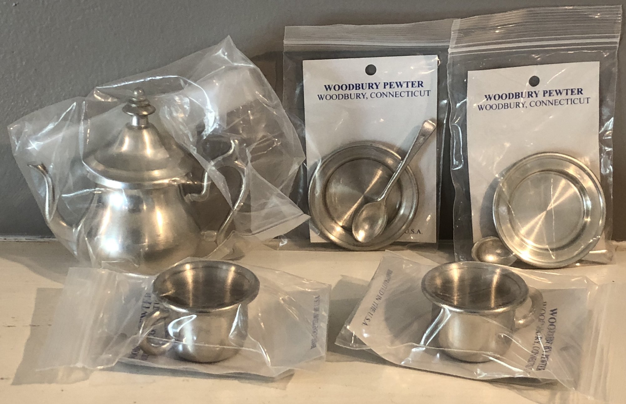 Vintage Woodbury Pewter 5pc Miniature - New - teapot 3.5" tall