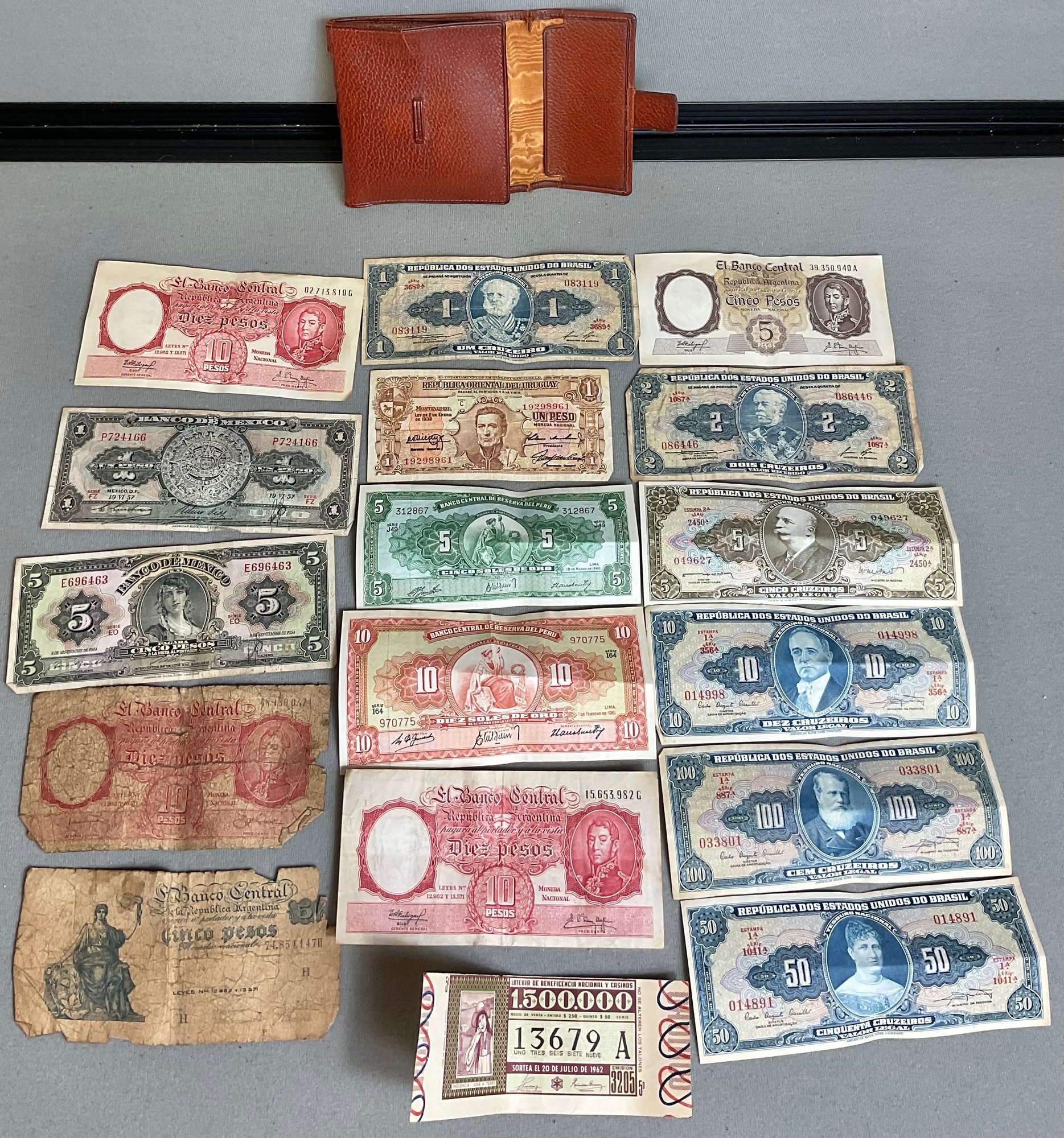 Wallet W/ Vintage Foreign Currency -as found - good used condition