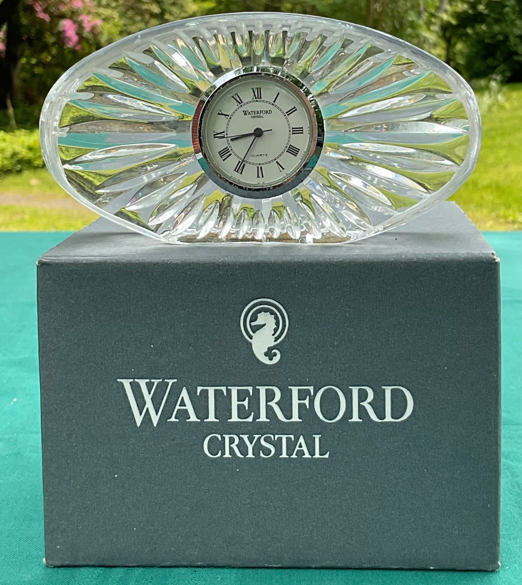 Waterford Crystal Small Oval Clock - needs battery - has original box - no chips - 2.5” tall x 4.75” long x 1” wide - good used condition