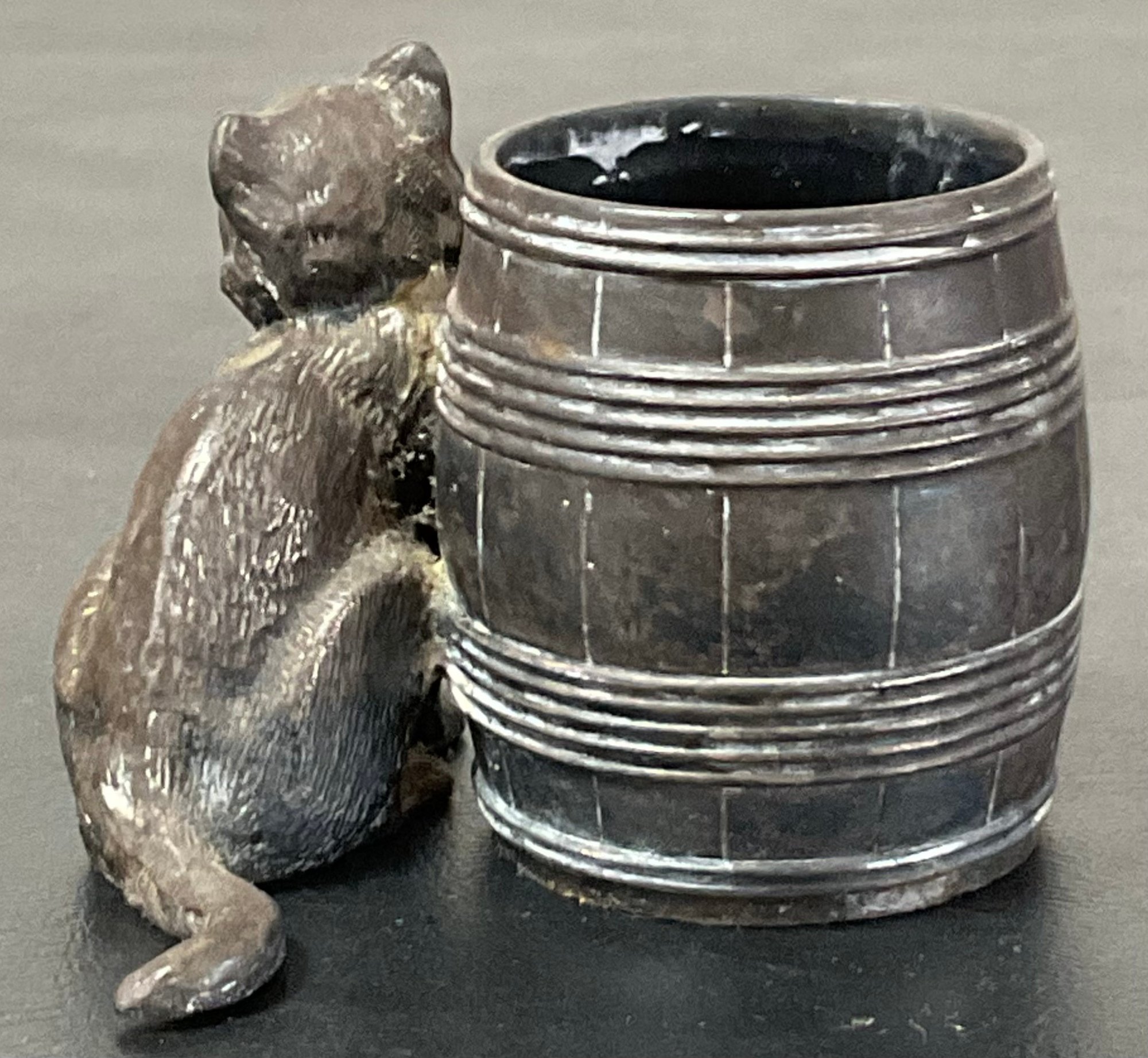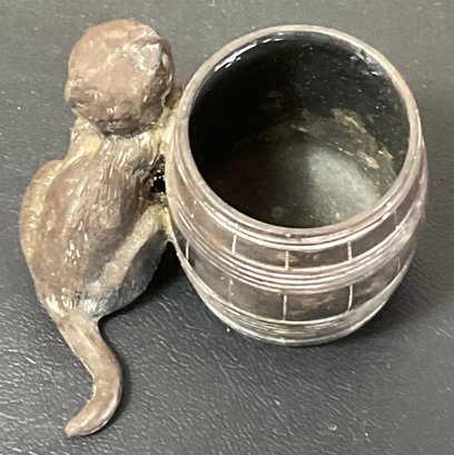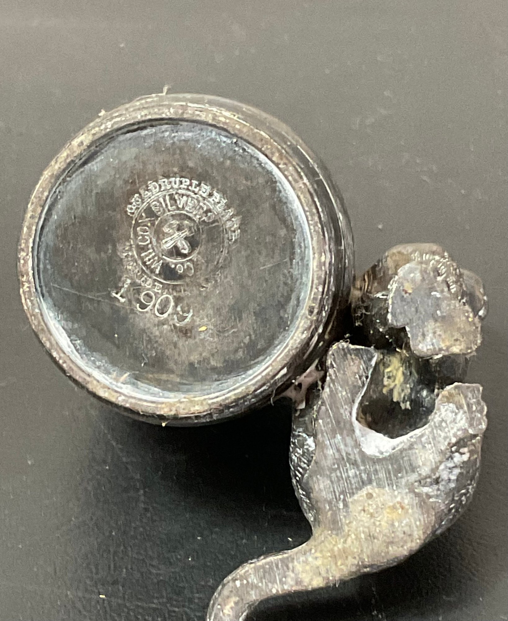 Wilcox Silver Plate Cat Figural Match Holder - Meriden - glass eyes - 1.75” tall - good used condition