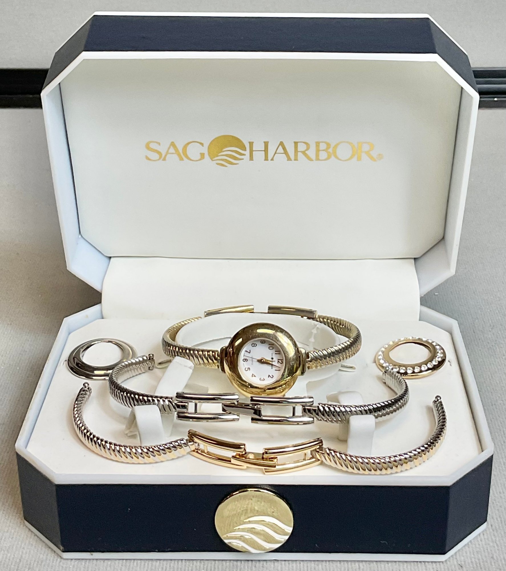 Womans Sag Harbor Watch W/ Exchangeable Bezels & Bands - needs battery - good used condition